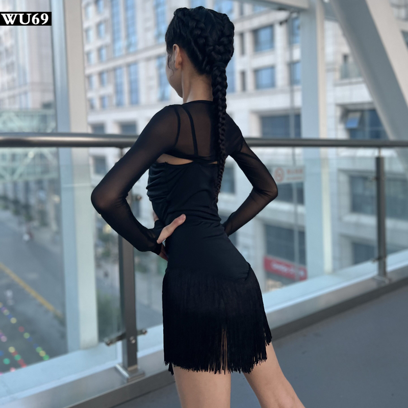 网红新款拉丁舞练功服女童高级儿童表演服专业少儿拉丁舞蹈服套装