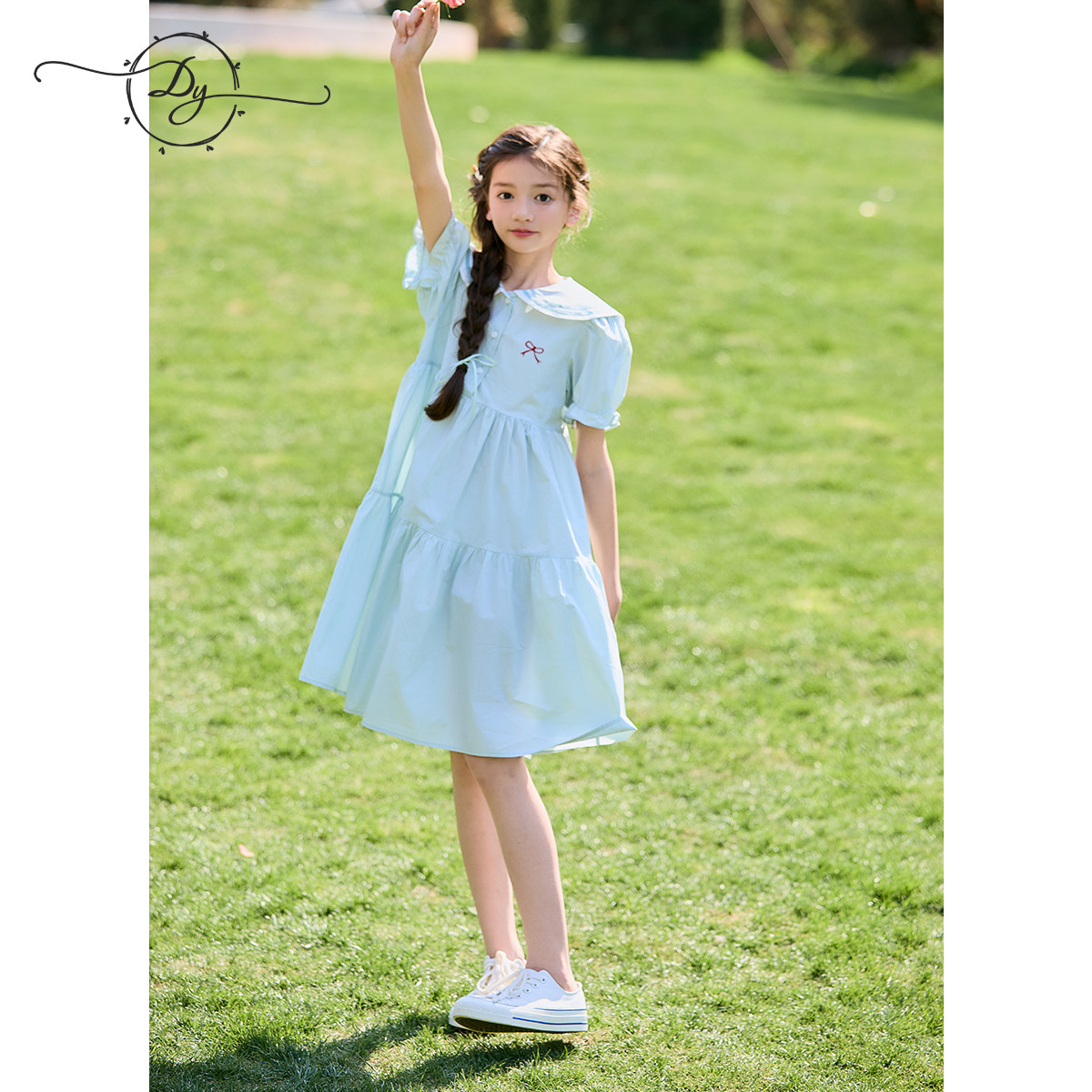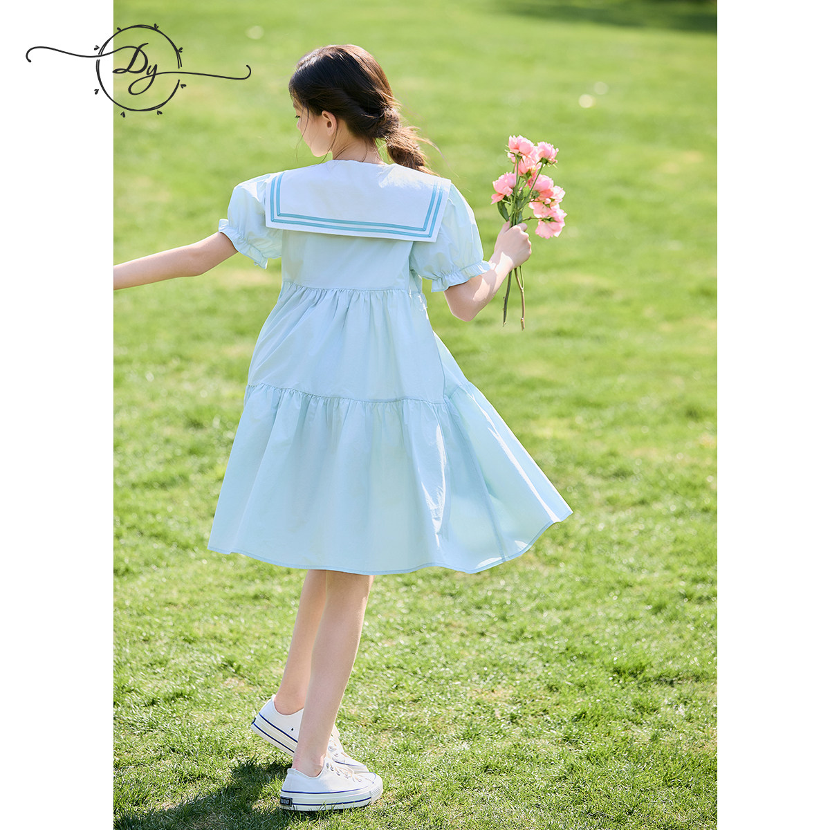 大童女童海军领泡泡袖连衣裙