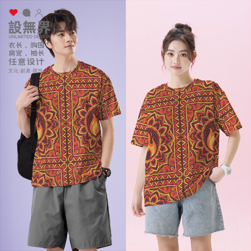 印度热门特色曼陀罗花纹纹理设计大码速干T恤男装女装0018设 无界