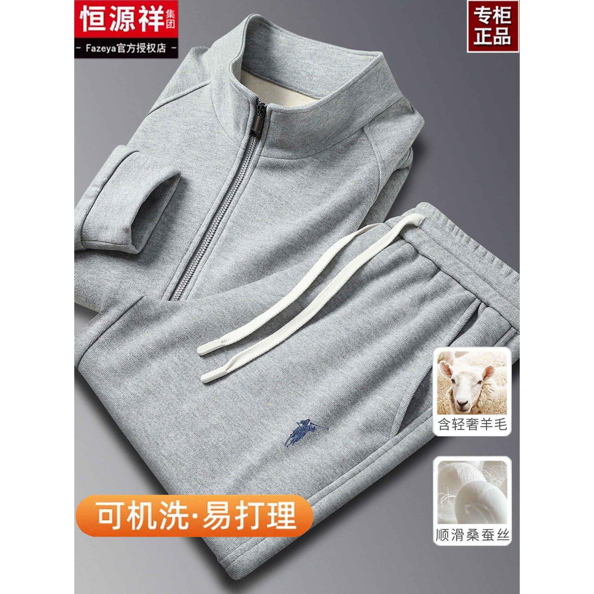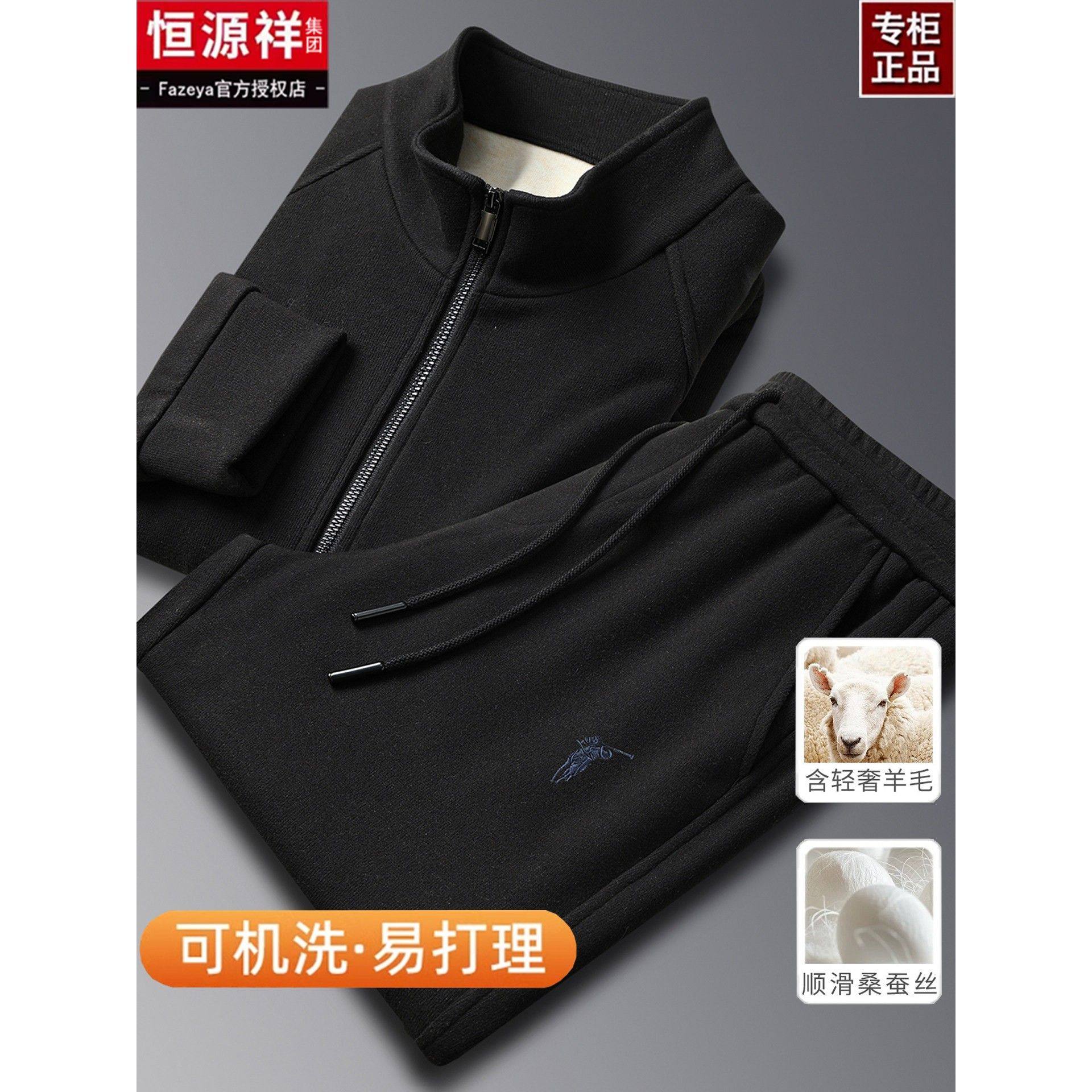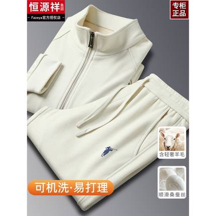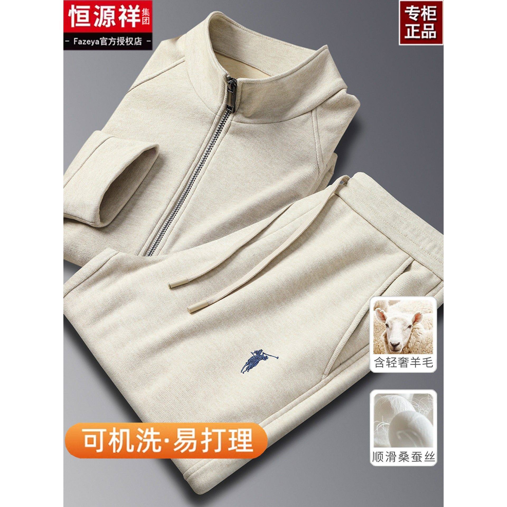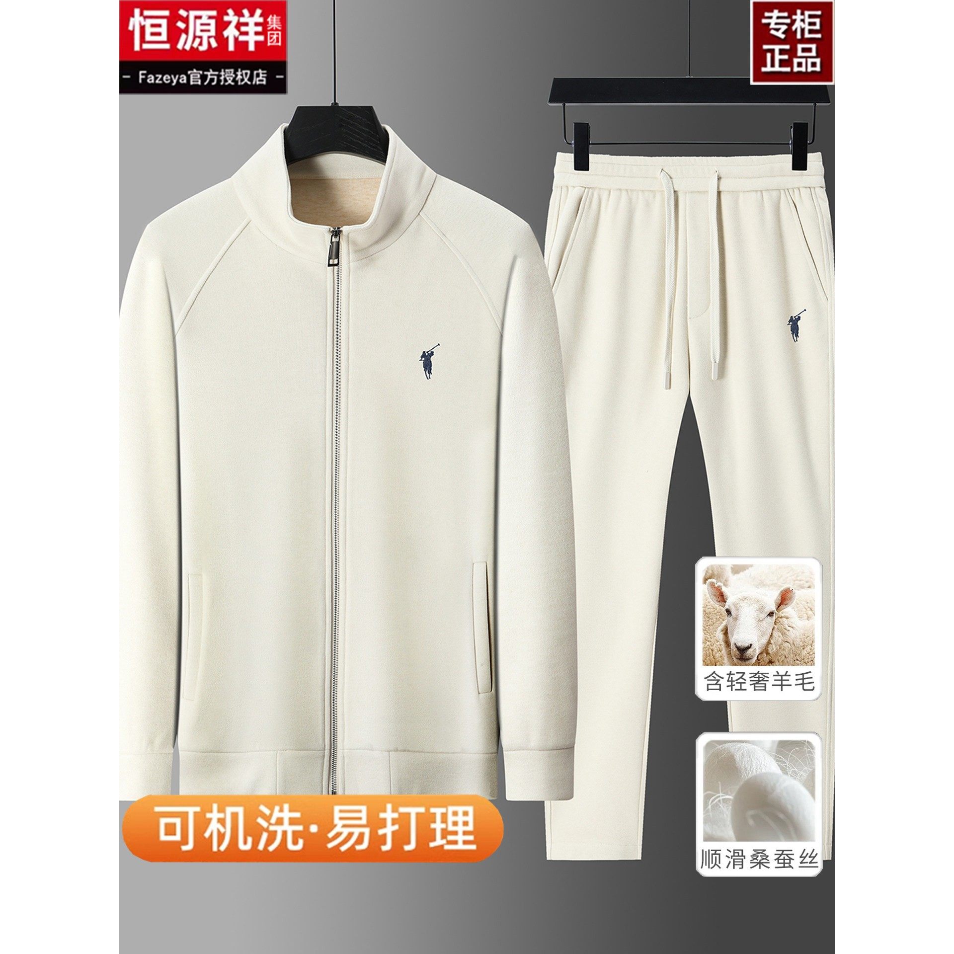 高端桑蚕丝男士休闲运动套装立领恒源祥彩羊毛两件套男春秋时尚潮