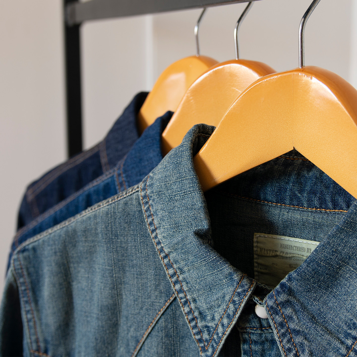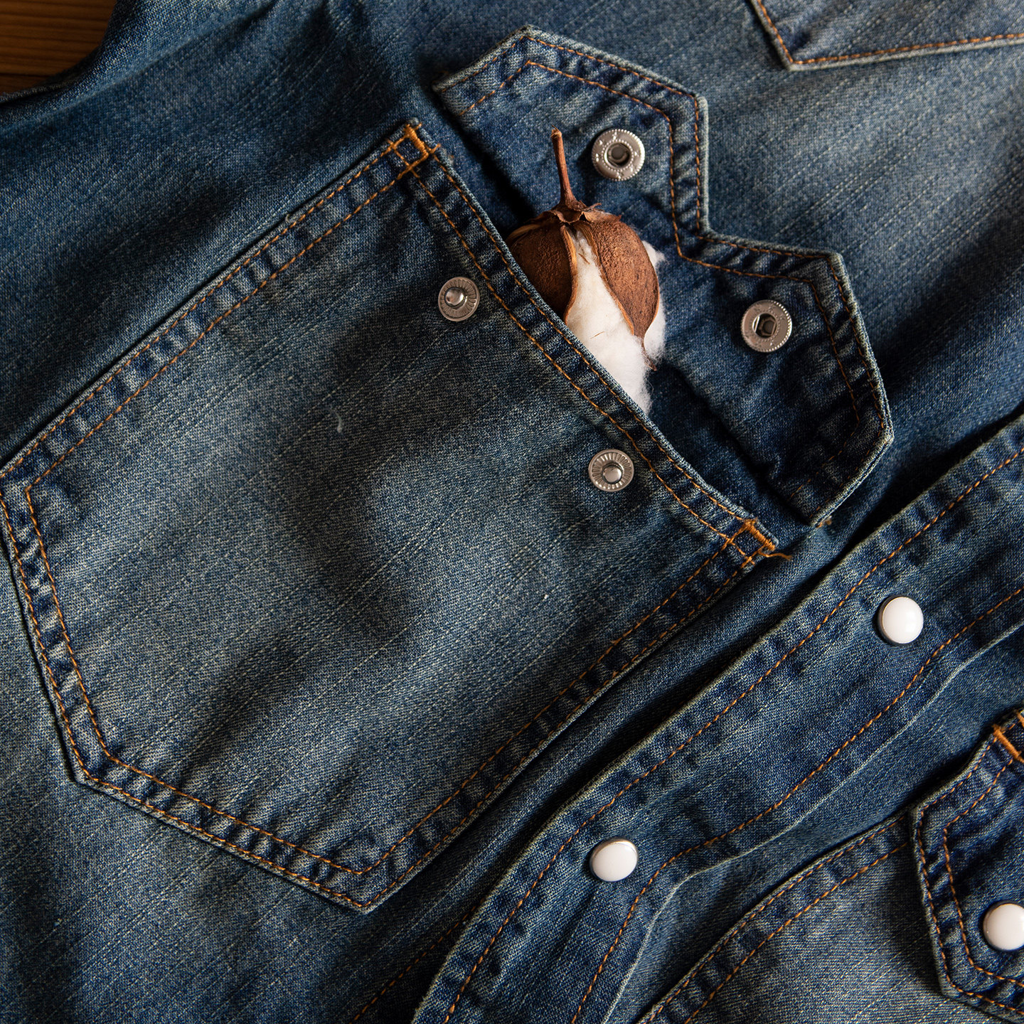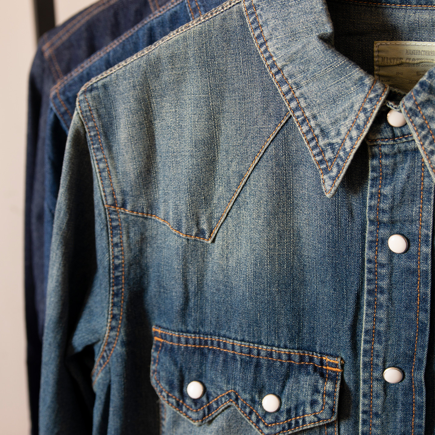 7oz竹节棉水洗做旧全棉美式复古长袖牛仔衬衫基础男女按扣秋上衣