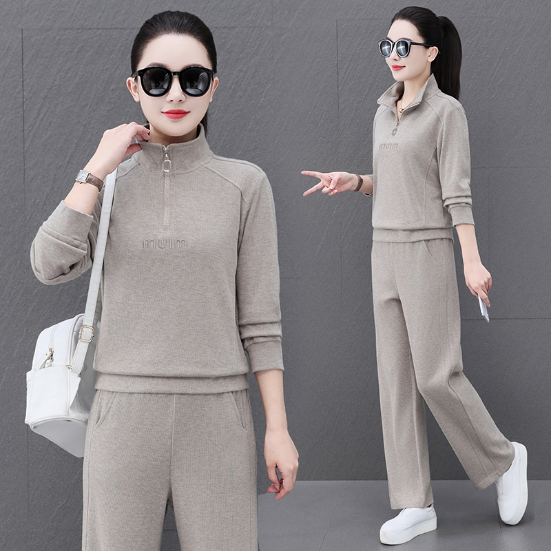 啄木鸟卫衣运动套装女士2025新款春秋款中年妈妈阔腿裤休闲两件套