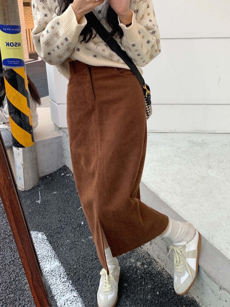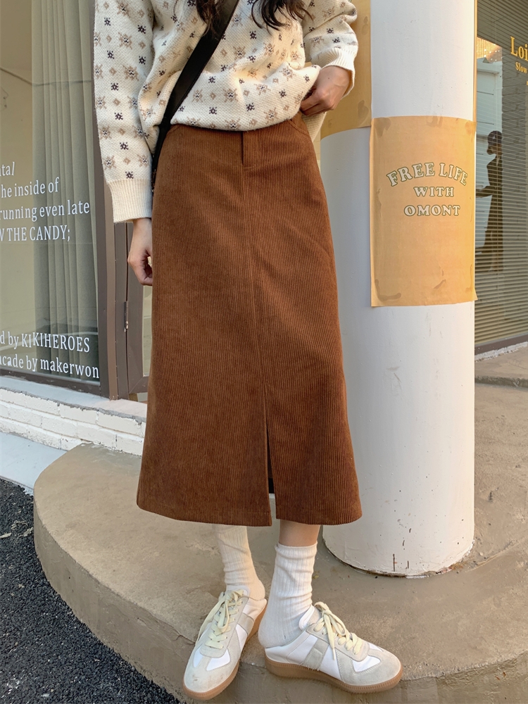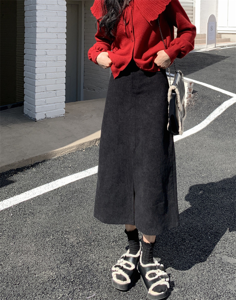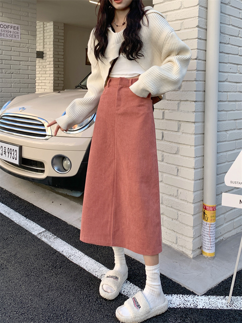 高级感灯芯绒中长款半身裙