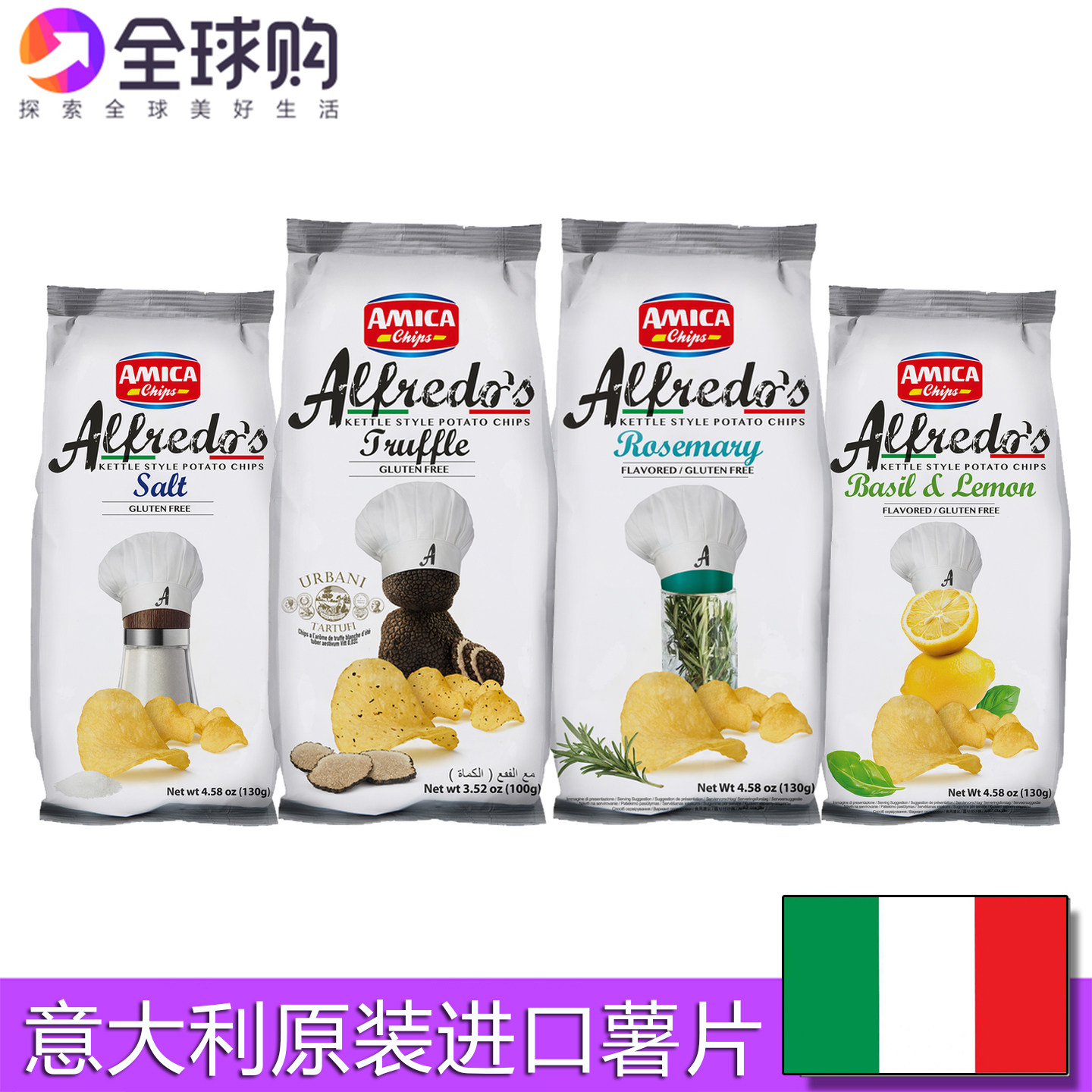AMICA意大利进口薯片迷迭香柠檬罗勒味盐味无麸质黑松露味薯片