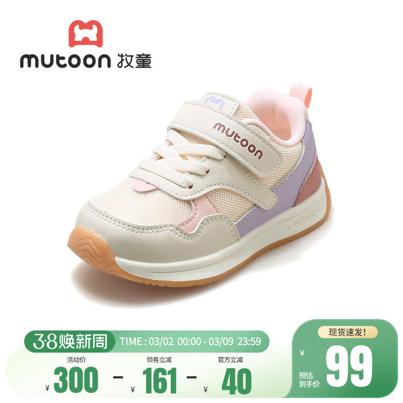 牧童童鞋女童运动鞋春季轻便减震儿童休闲鞋时尚撞色男童跑步鞋子