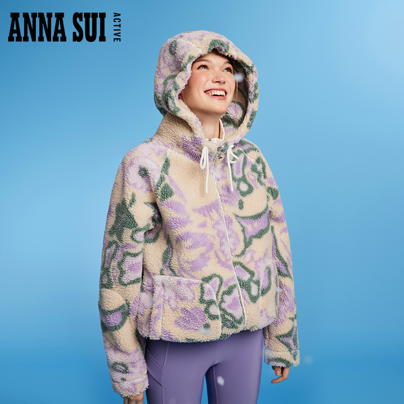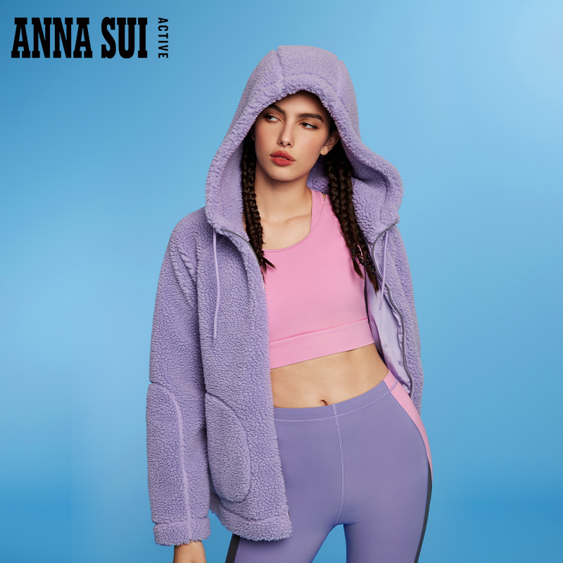 ANNA SUI安娜苏运动 经典安娜系列 紫色仿羊羔毛外套连帽上衣女