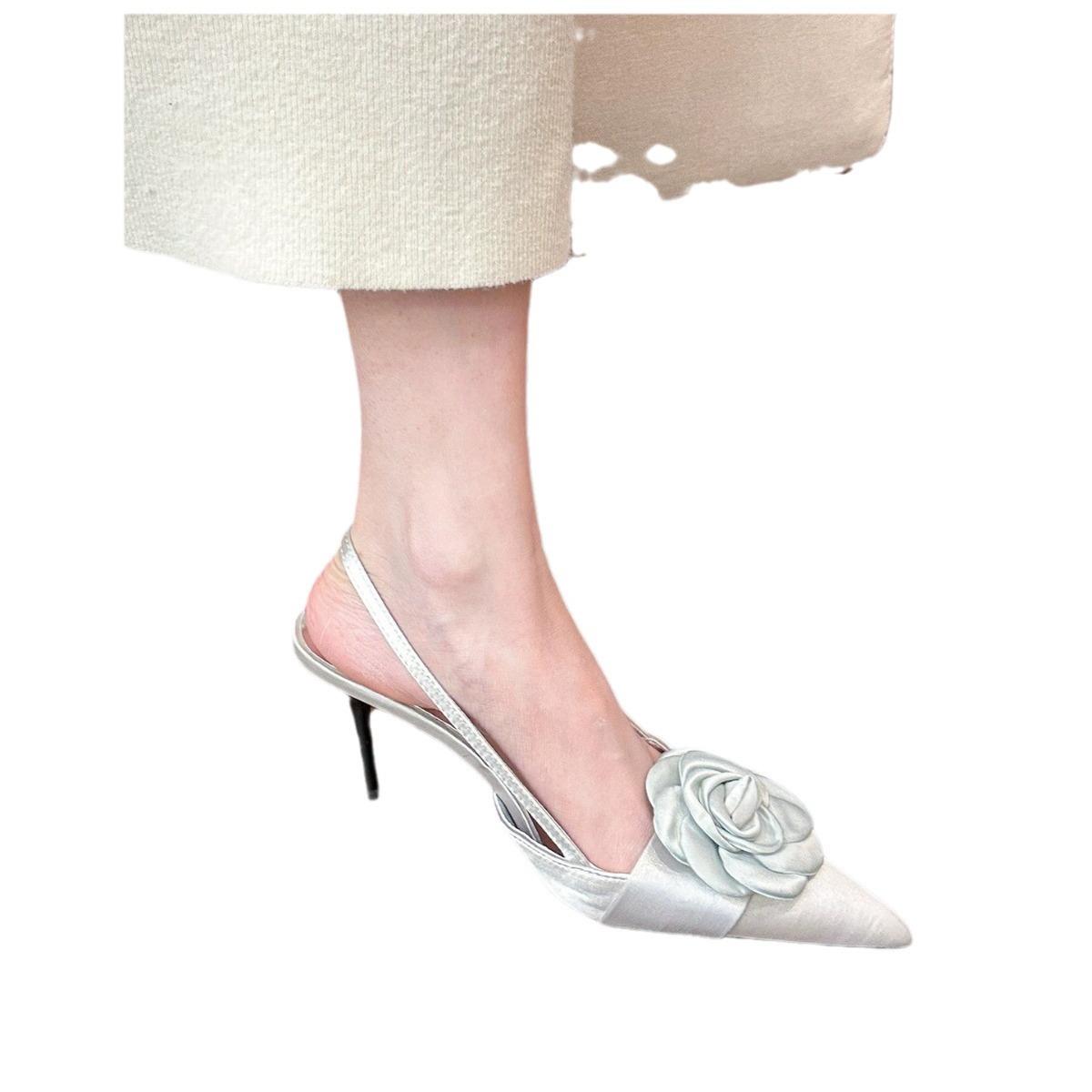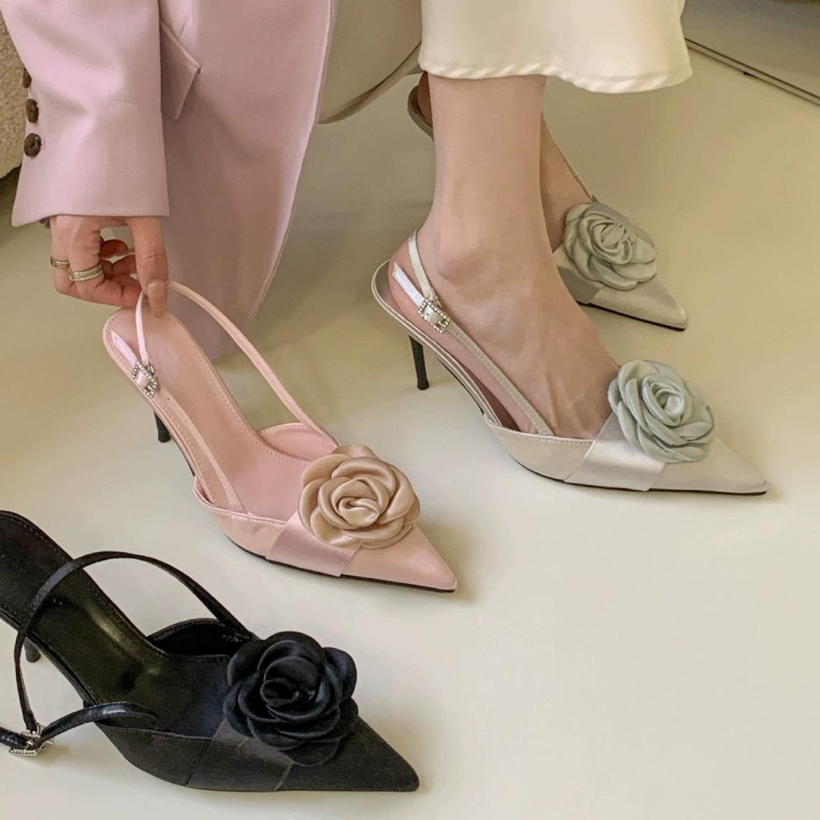 尖头法式花朵包头凉鞋仙女鞋子新款春夏季晚晚名媛单鞋女高跟鞋