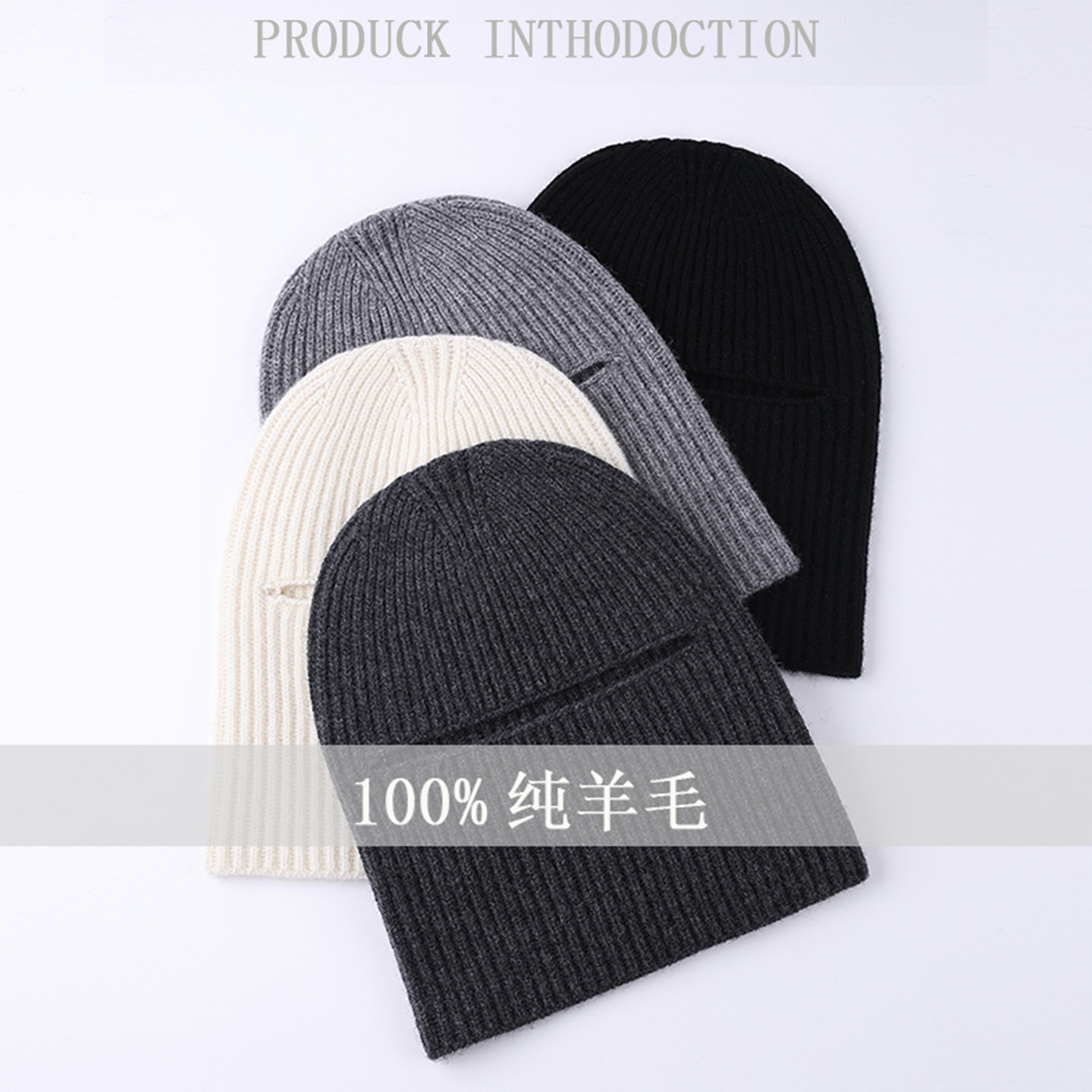 100%纯羊毛男士款冬季防寒保暖巴拉克拉法帽骑行护耳毛线针织冷帽
