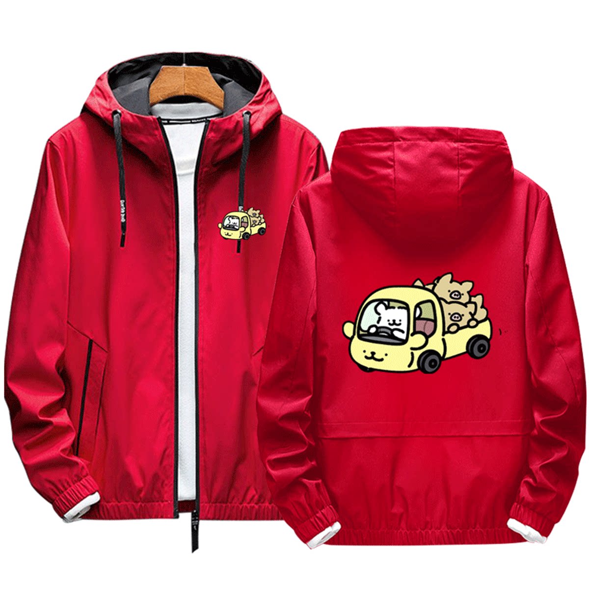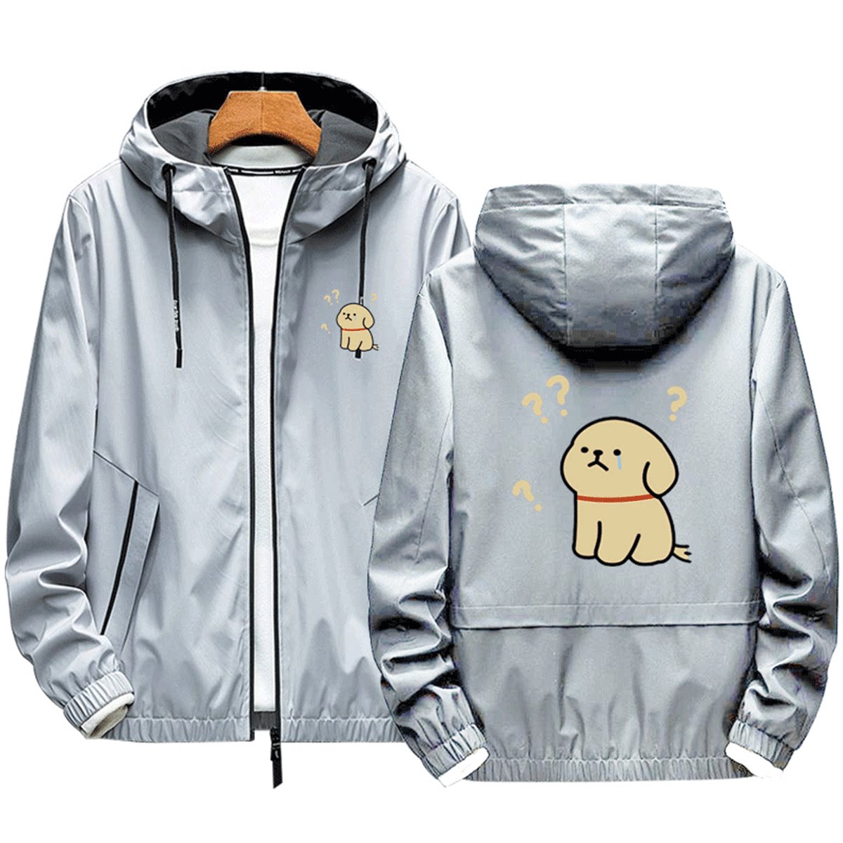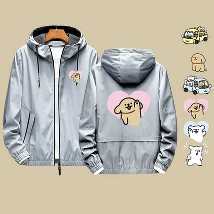 马尔济斯线条小狗卡通联名款男女情侣同款时尚定制连帽夹克服外套