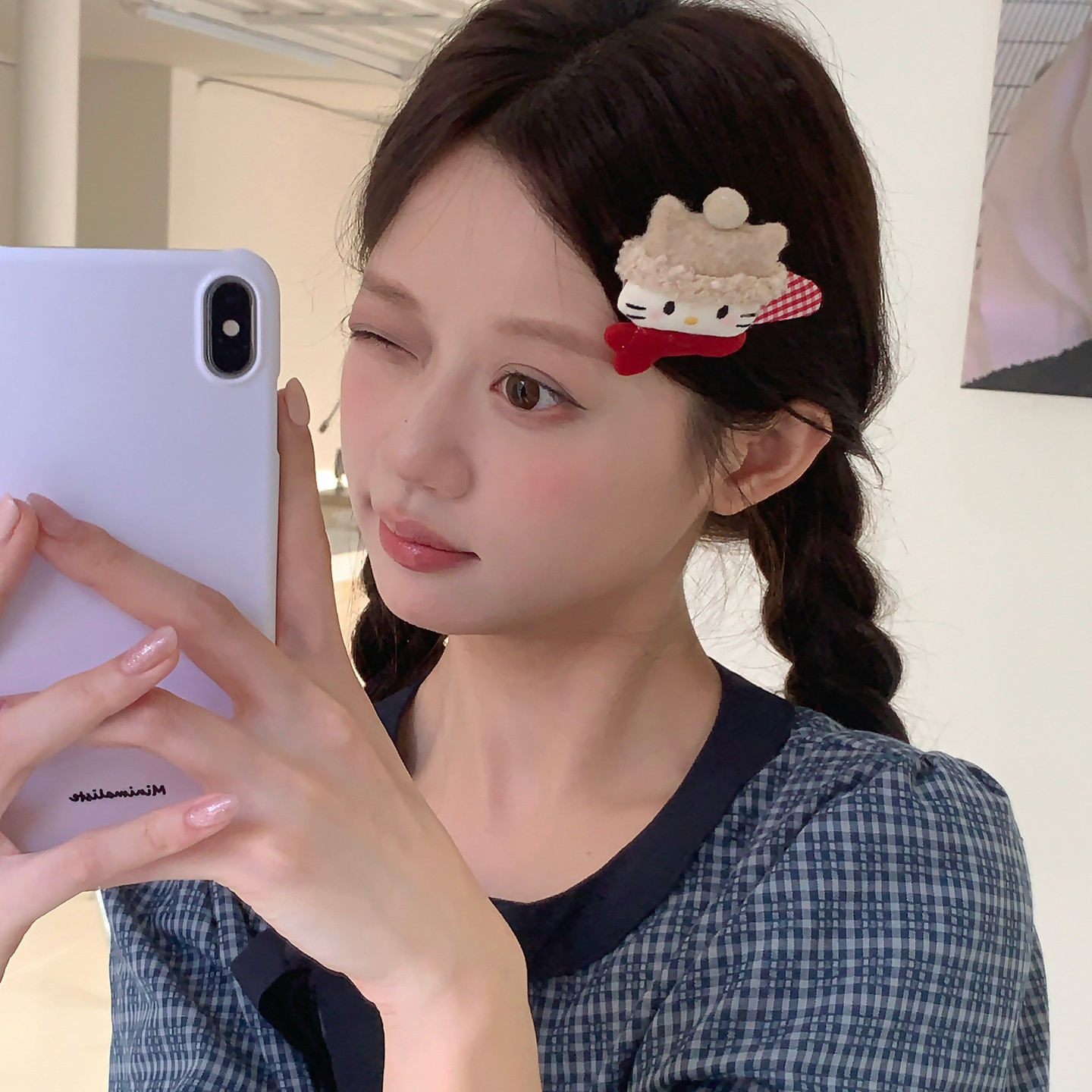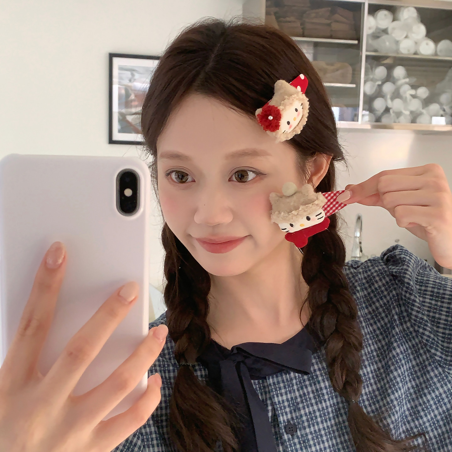 可爱秋冬!戴帽子围巾猫咪波点格纹发夹bb夹少女感碎发刘海夹边夹