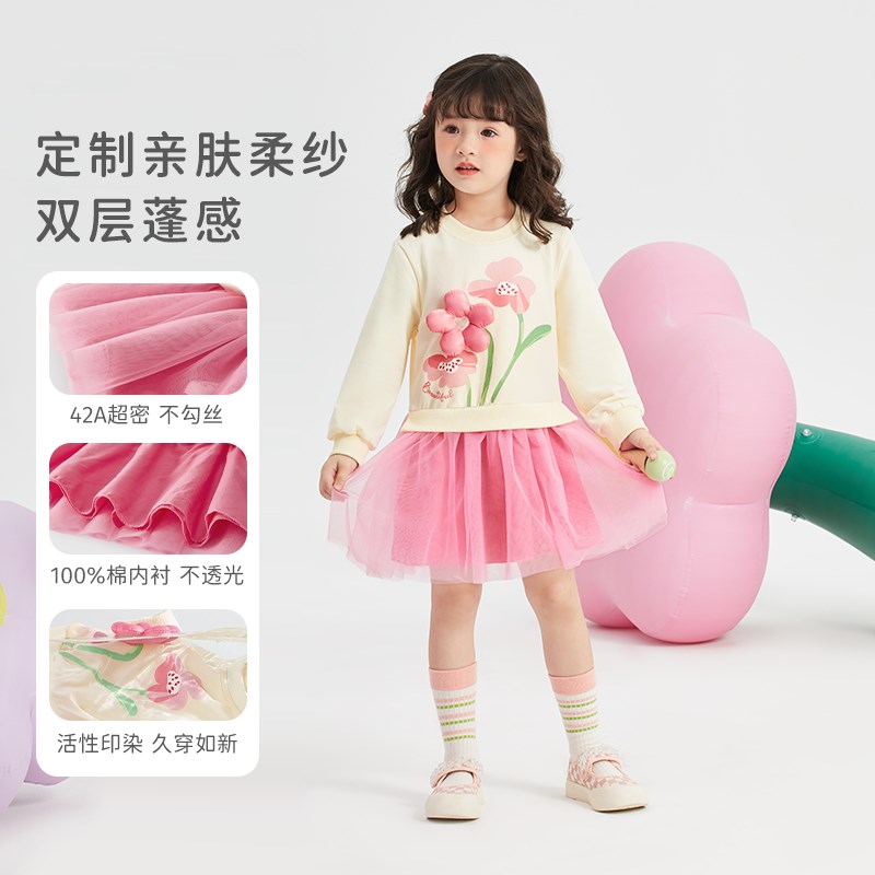 女童连衣裙2024新款春装宝宝洋气公主裙春季卫衣纱裙儿童裙子春秋