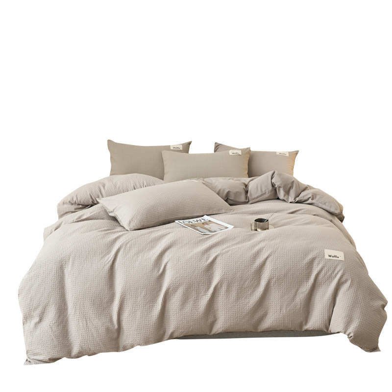 A类高级感华夫格四件套全棉纯棉水洗棉床单被套床笠床上用品纯色