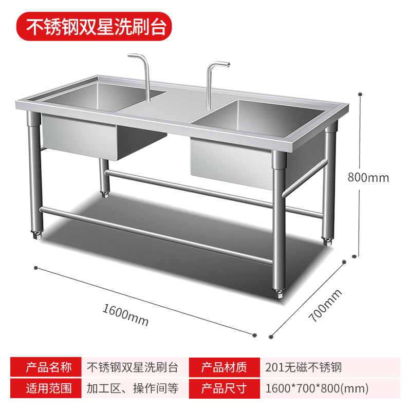 污碟台双槽不锈钢食堂水槽洗菜池洗碗水池商用洗刷台洗碗盆工作台