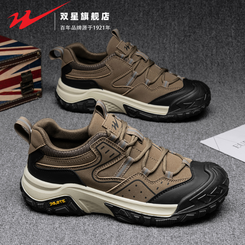 双星男鞋秋季2025新款男士户外休闲登山鞋皮面防水防滑运动劳保鞋