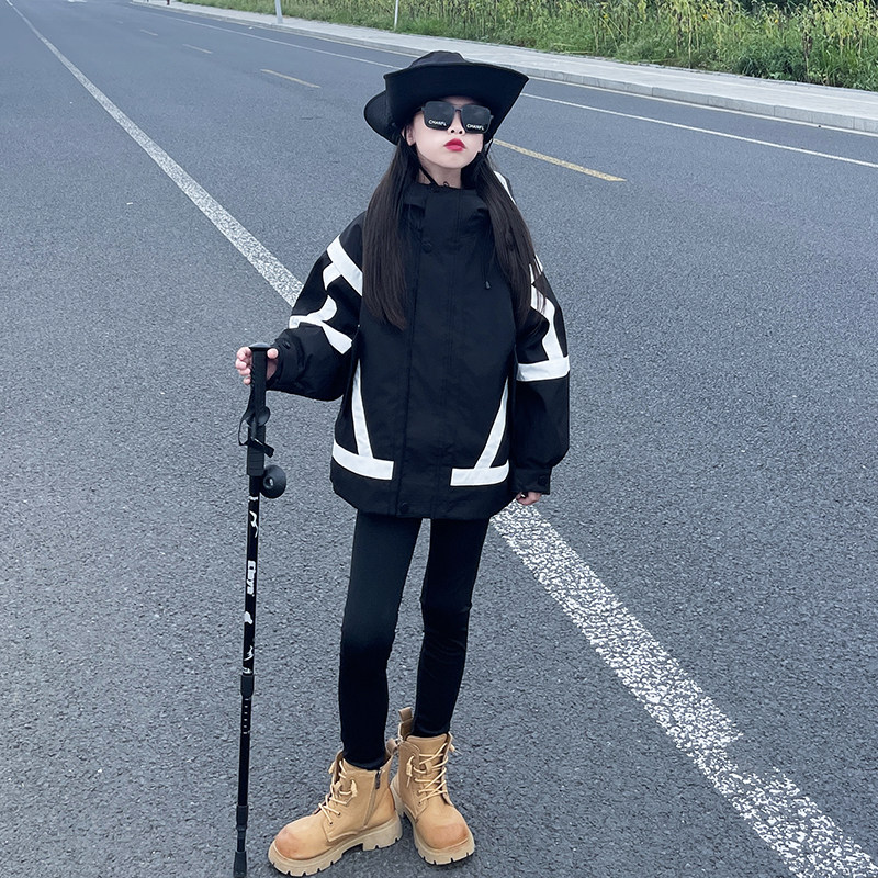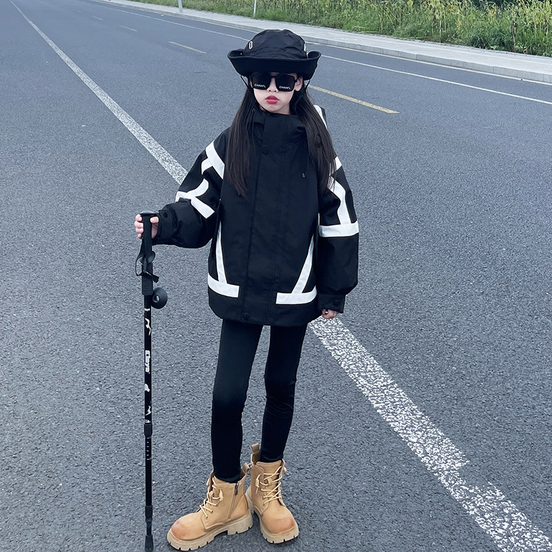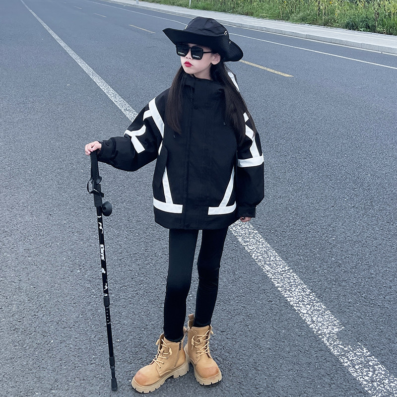 女童冲锋衣三合一可拆卸2025新款女大童三防外套儿童春秋加厚风衣