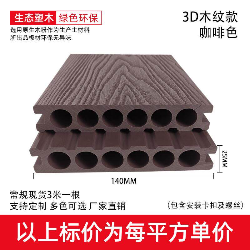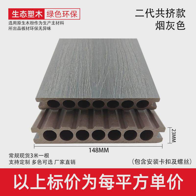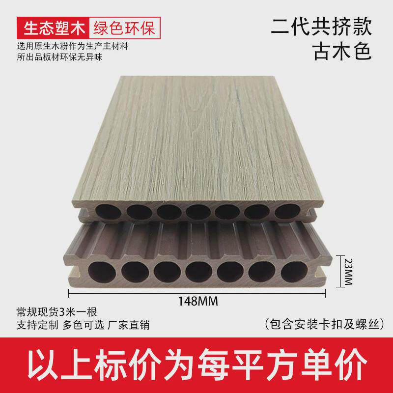塑木地板室外户外露台圆孔木塑庭院阳台园林工程防腐木纹二代共挤