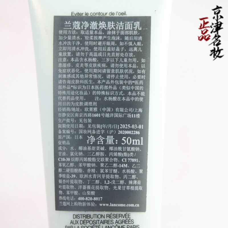 兰蔻净澈焕肤洁面乳50ml 保湿滋润混油皮极光洗面奶到28年
