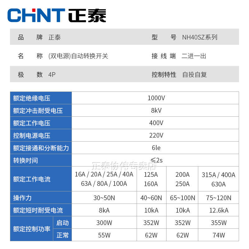 正泰双电源自动转换开关三相四线380v双路切换控制器630Apc级NH40
