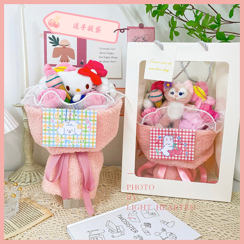 创意棉花卡通玩偶花束可爱毛绒花手捧小花束儿童生日毕业节日礼物