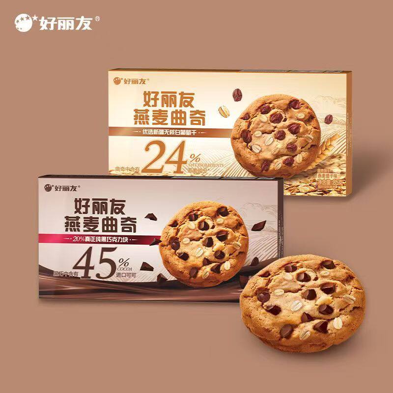 好丽友燕麦曲奇85g巧克力味提子味巧克力块休闲饼干办公室零食