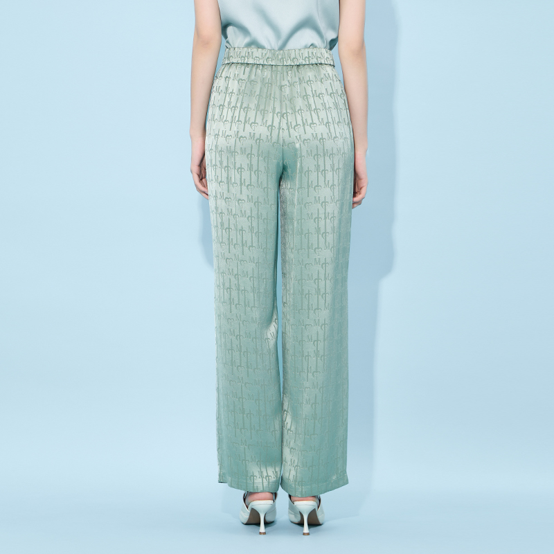 马天奴绿色醋纤混纺提花直筒裤