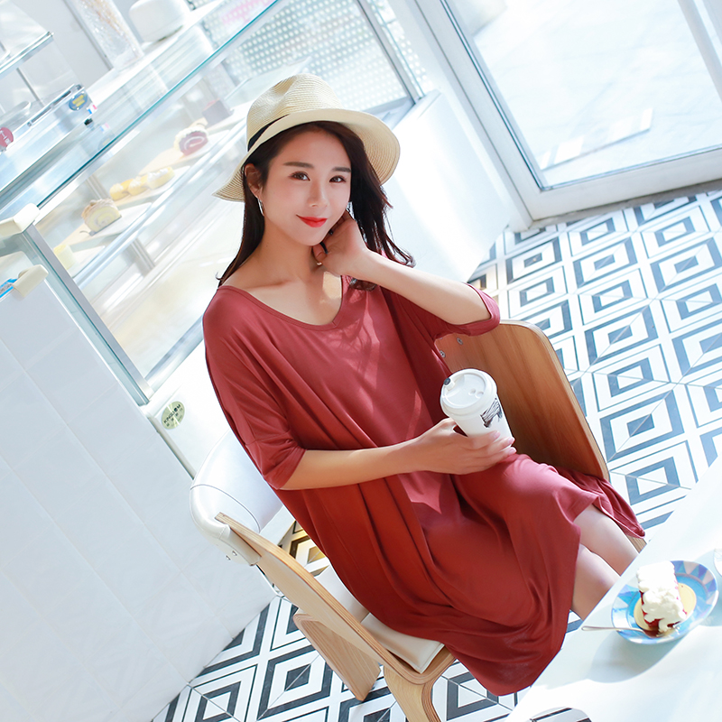 莫代尔夏季连衣裙女2022新款洋气遮肚胖人新款夏200斤宽松睡裙女