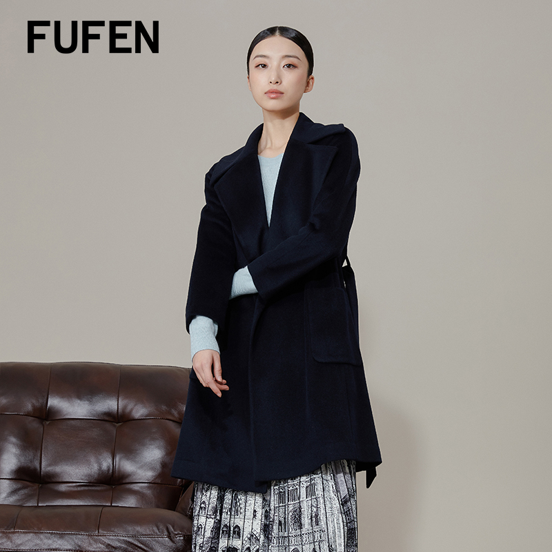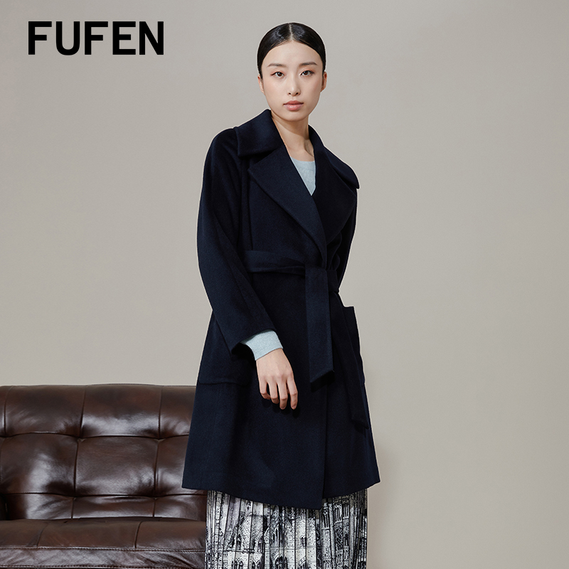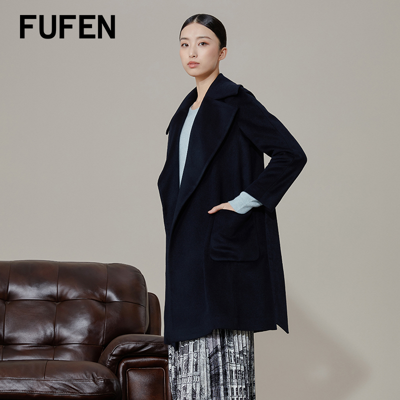 FUFEN福芬新款毛呢大衣西装领宽松中长款外套上衣DY-12553-1