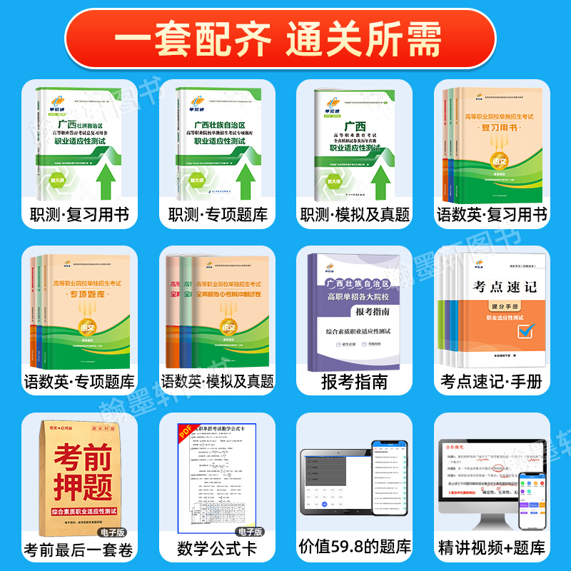 广西单招复习资料2026年语数英文化综合素质职业技能教材广西高职单招考试真题试卷模拟职业适应性测试春季高考职教普高中职生2025