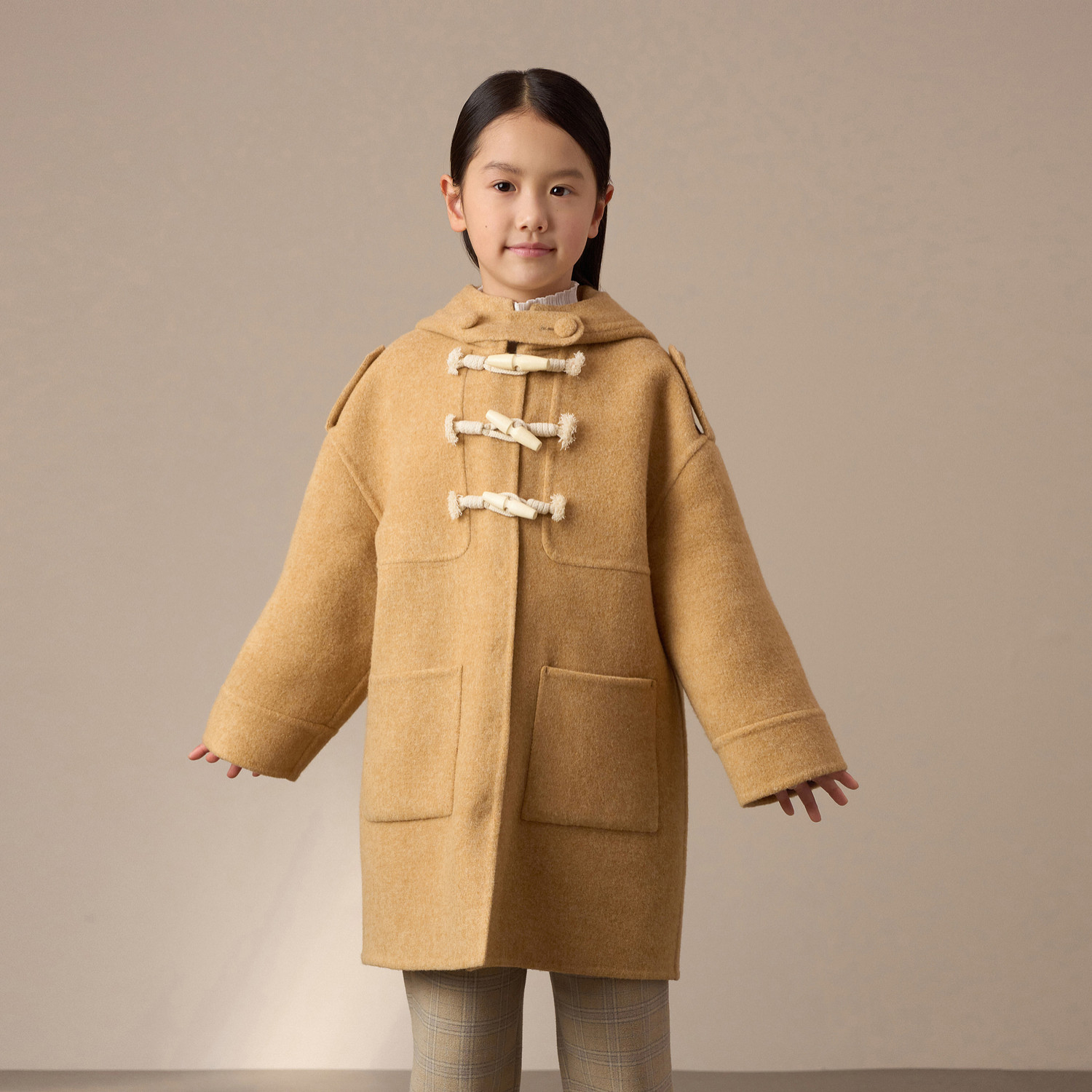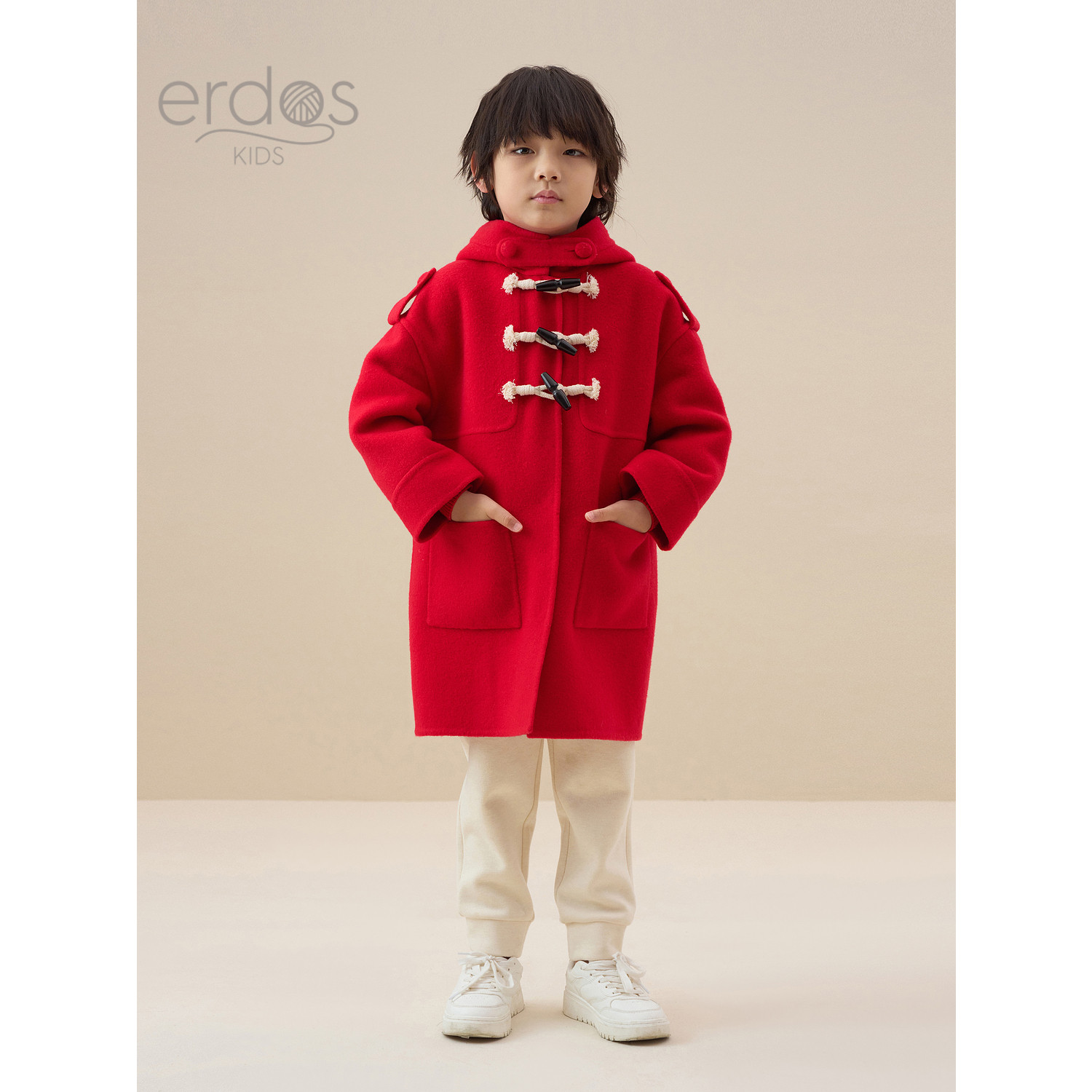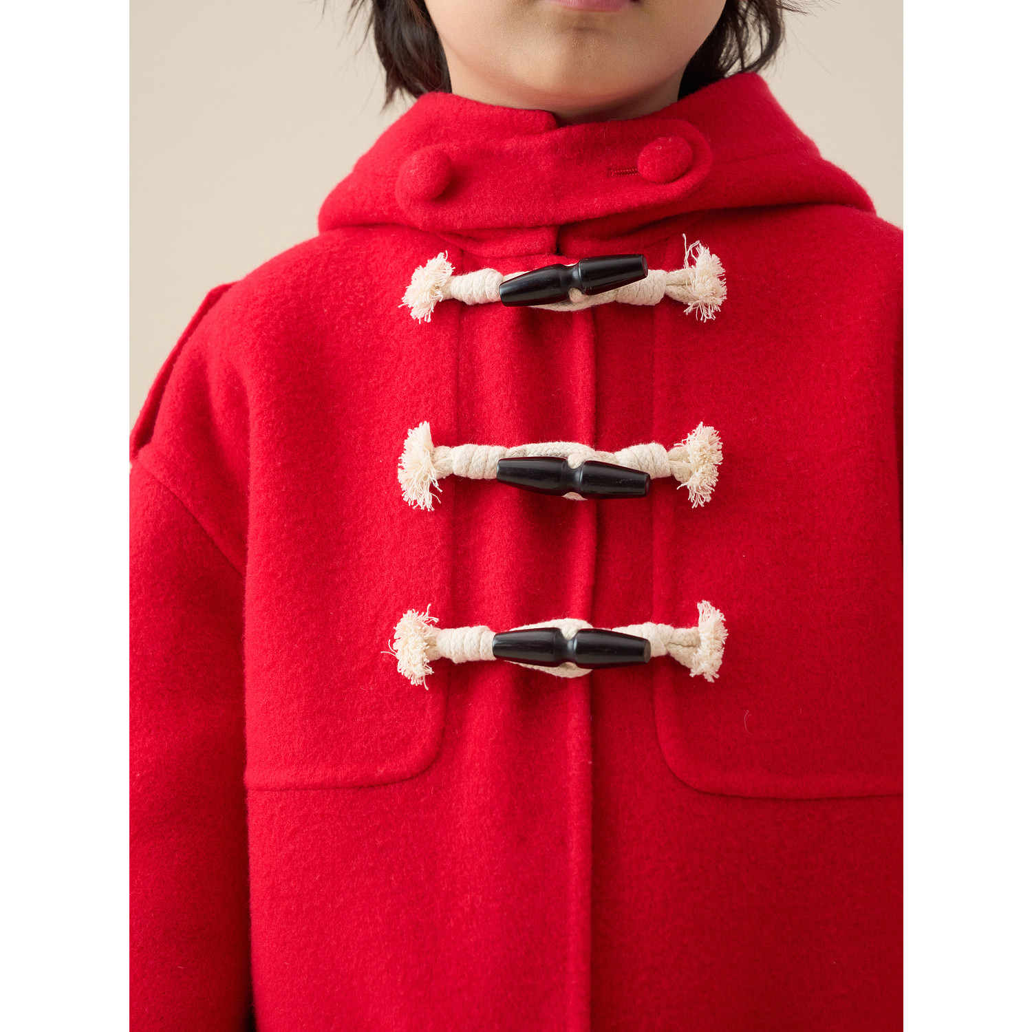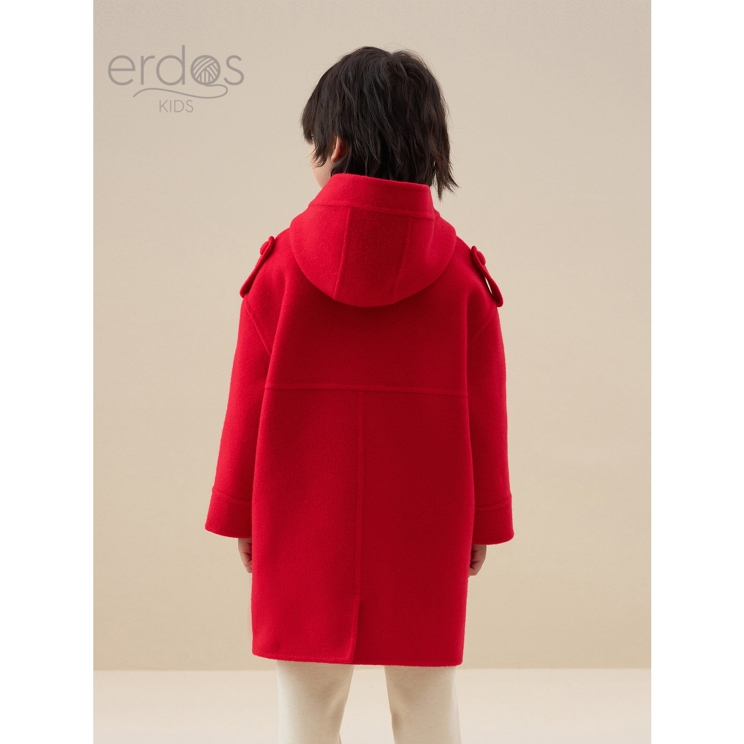 鄂尔多斯儿童大衣秋冬新品中长款厚毛呢大衣外套保暖连帽红色