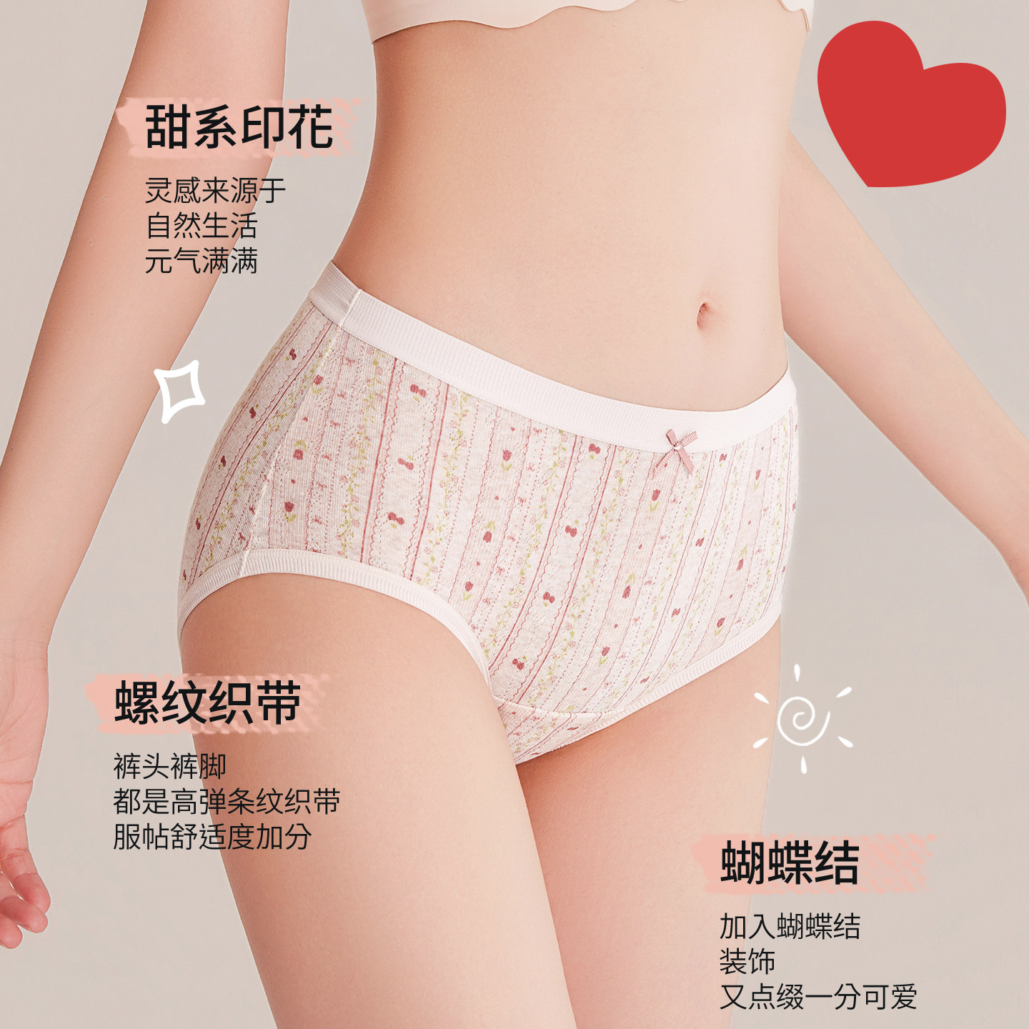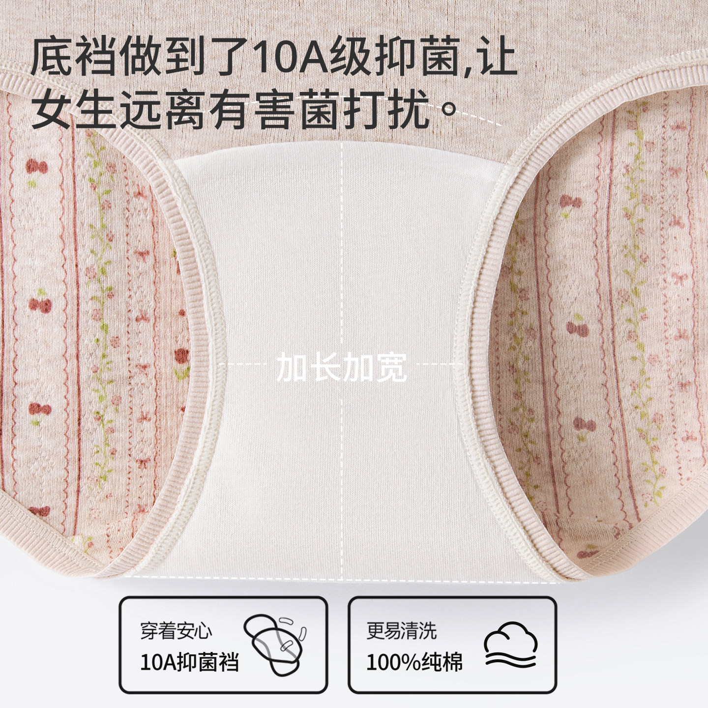 猫人纯棉内裤女士中腰无痕全棉10A抗菌加长裆不夹臀少女生三角裤