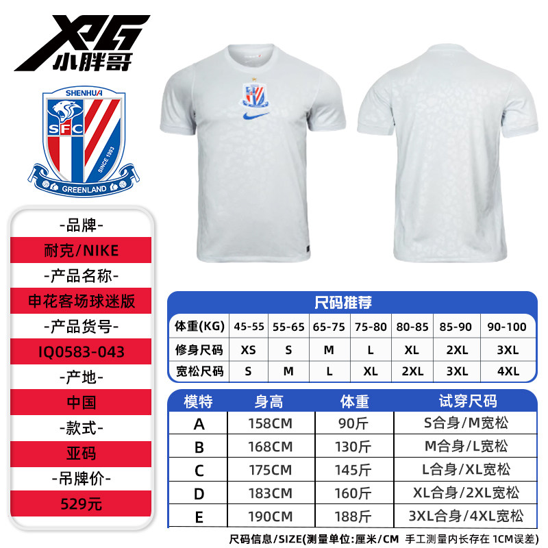 XPG小胖哥Nike耐克2026中超上海申花客场球衣短袖比赛训练足球服