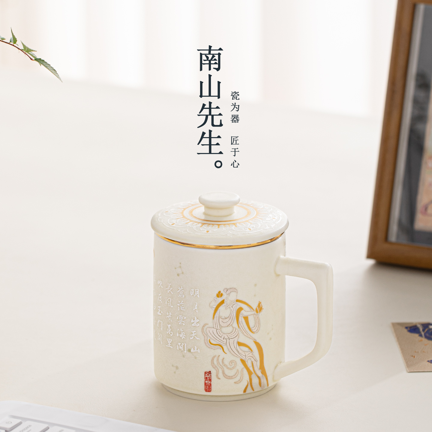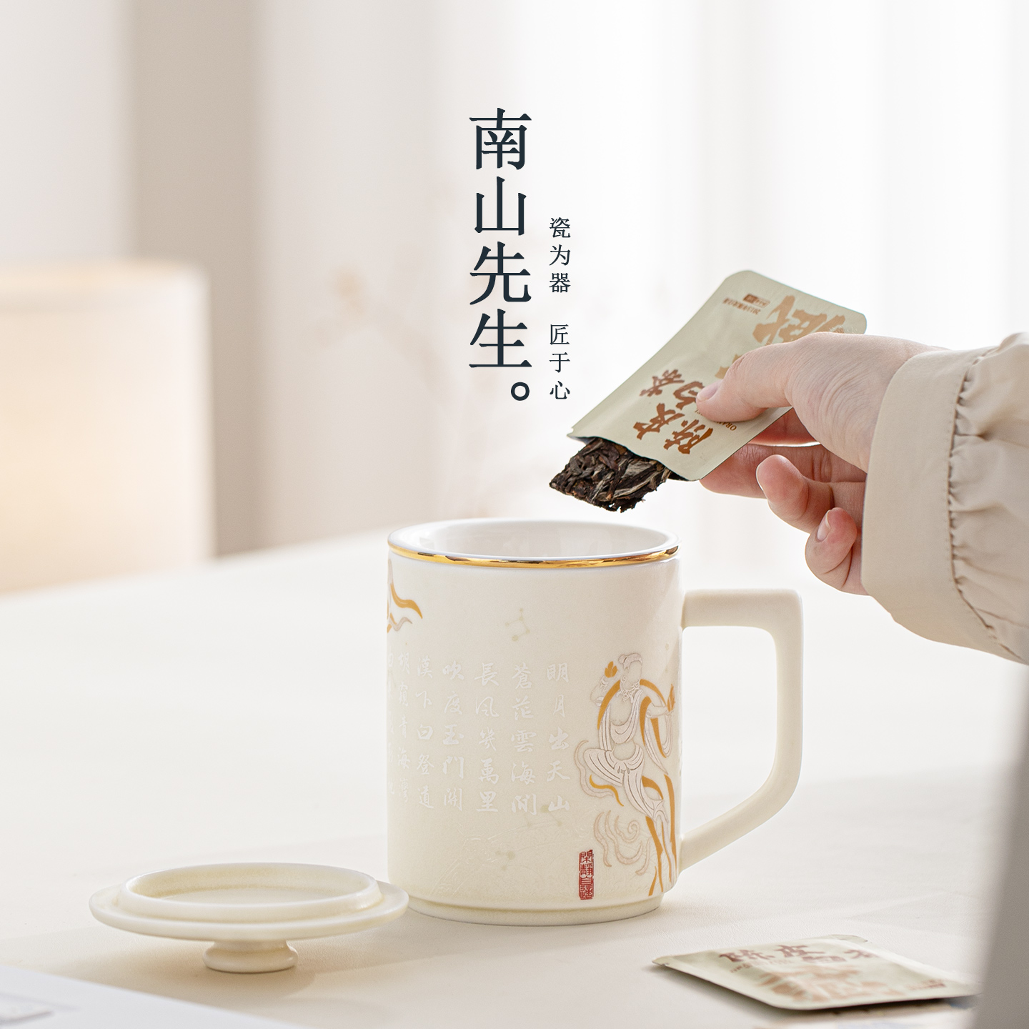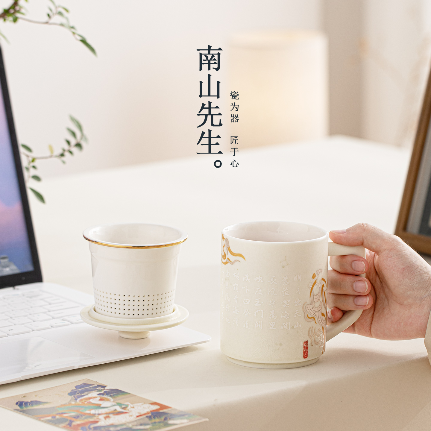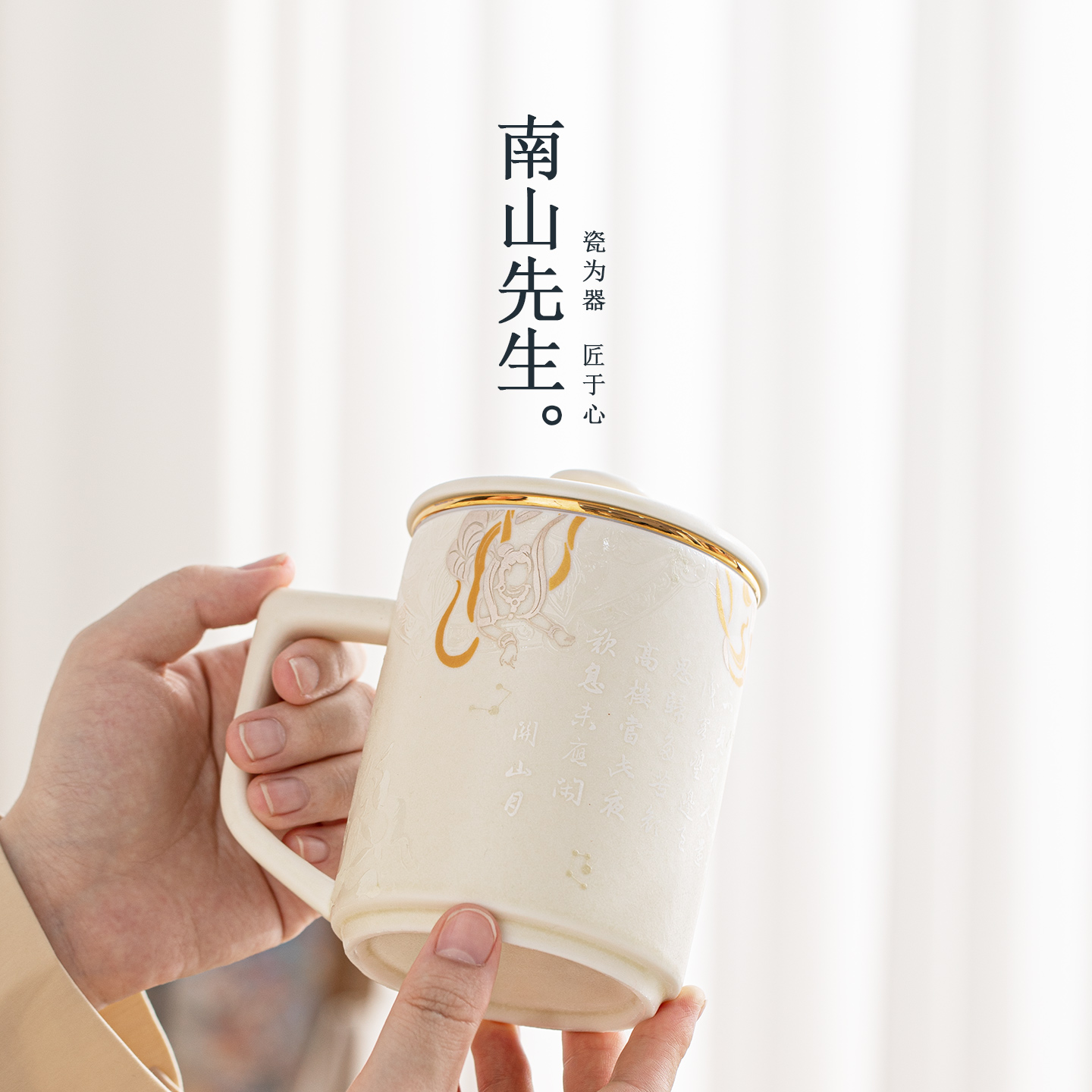 南山先生飞天马克杯国潮风带盖泡茶杯陶瓷办公室过滤茶水分离水杯