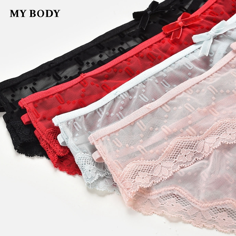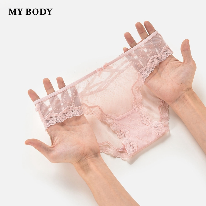 3件129|商场同款MYBODY内裤女士性感交叉绑带蕾丝薄款低腰三角裤