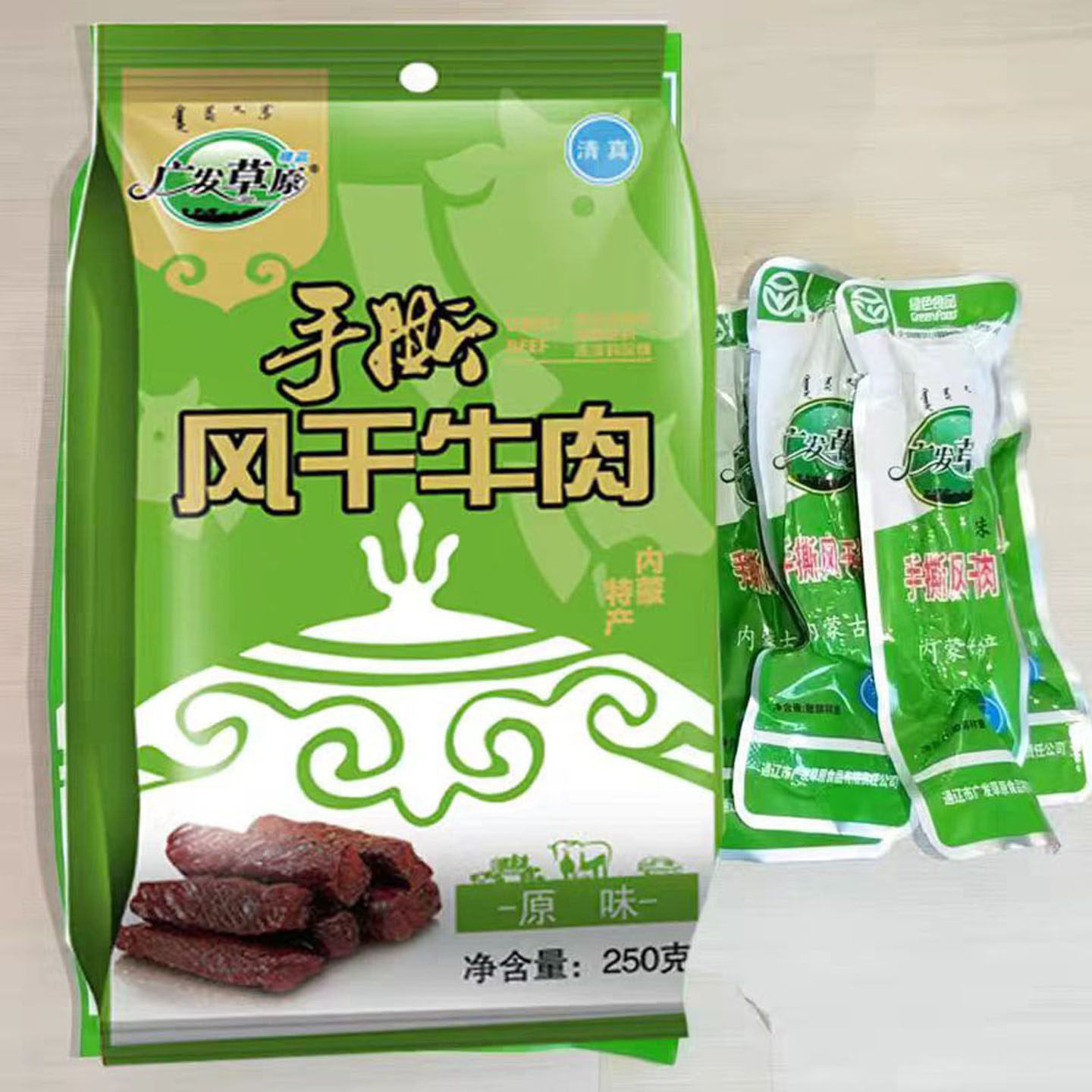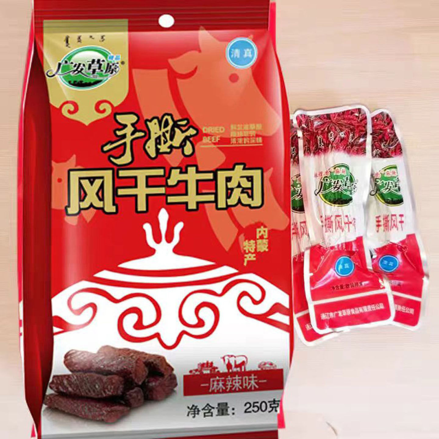 内蒙古通辽广发草原手撕风干牛肉干250g特产零食小吃清真食品烘烤