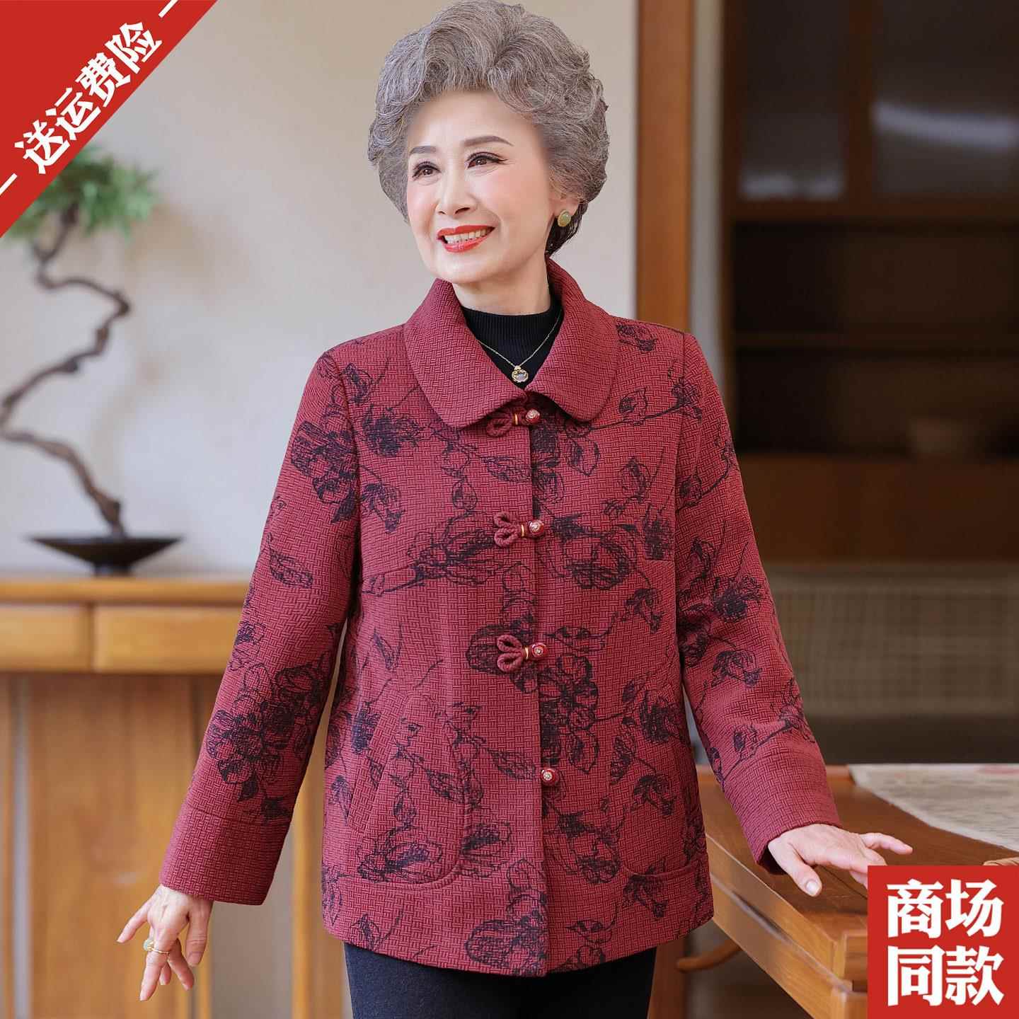 老年人秋装中国风羊毛外套中老年人妈妈装长袖上衣翻领老太太开衫