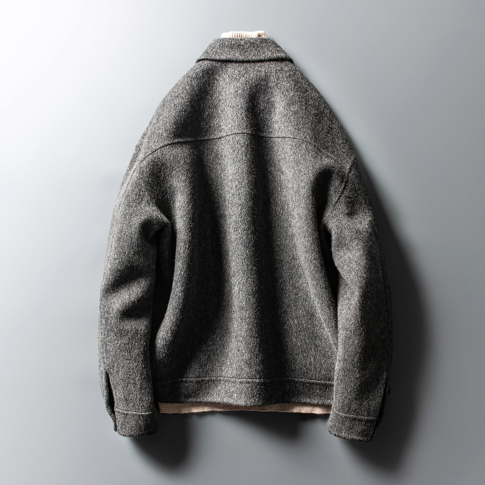 老钱风廓形翻领双面呢夹克男秋冬100%绵羊毛宽松短款毛呢大衣外套