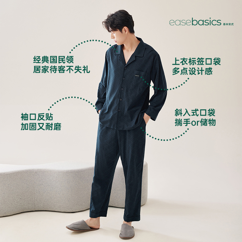 安之伴春夏季本命年纯棉新款睡衣男简约休闲长裤长袖套装家居服