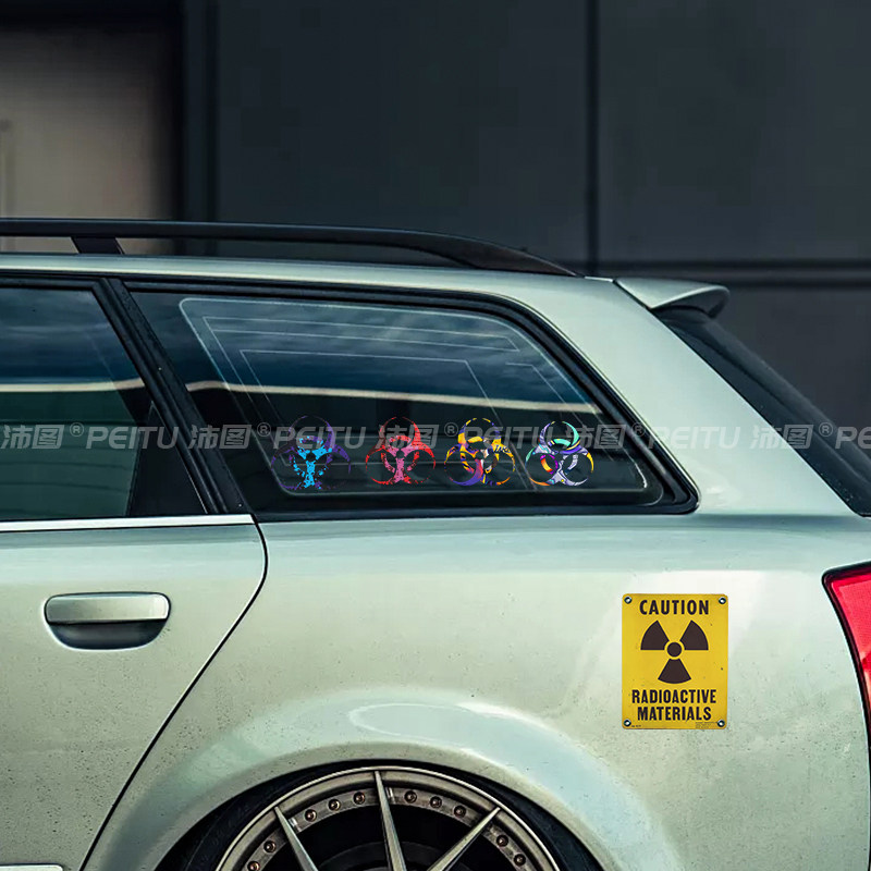 反光车贴核辐射生化危机污染泄露标志危险勿靠近警示贴纸防水防晒
