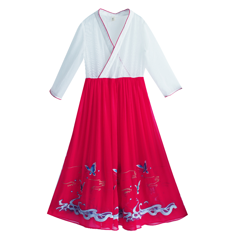 【158元区】棉麻记2025夏新款国风长裙文艺刺绣雪纺连衣裙女