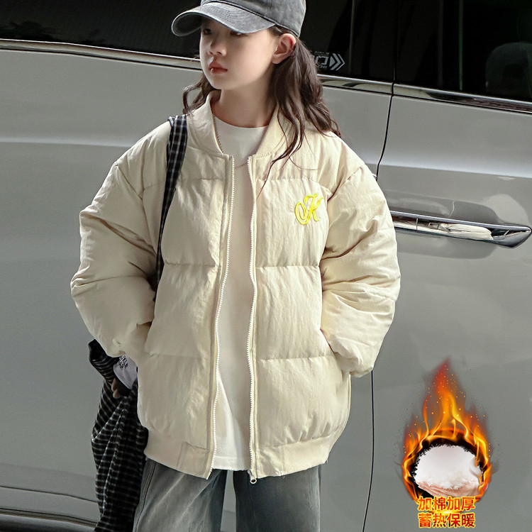 潮流洋气13岁立领羽绒棉米杏色