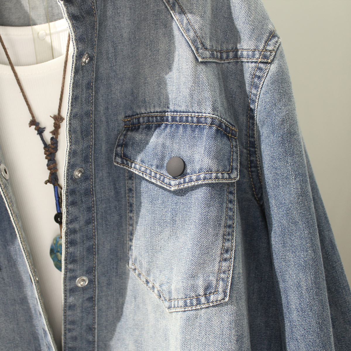 2025春装新品翻领全棉长袖牛仔女衬衫开衫外套直筒气质百搭打底衫
