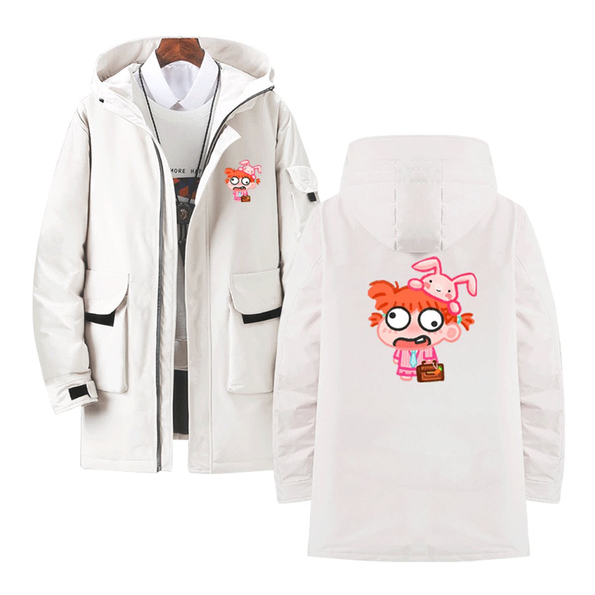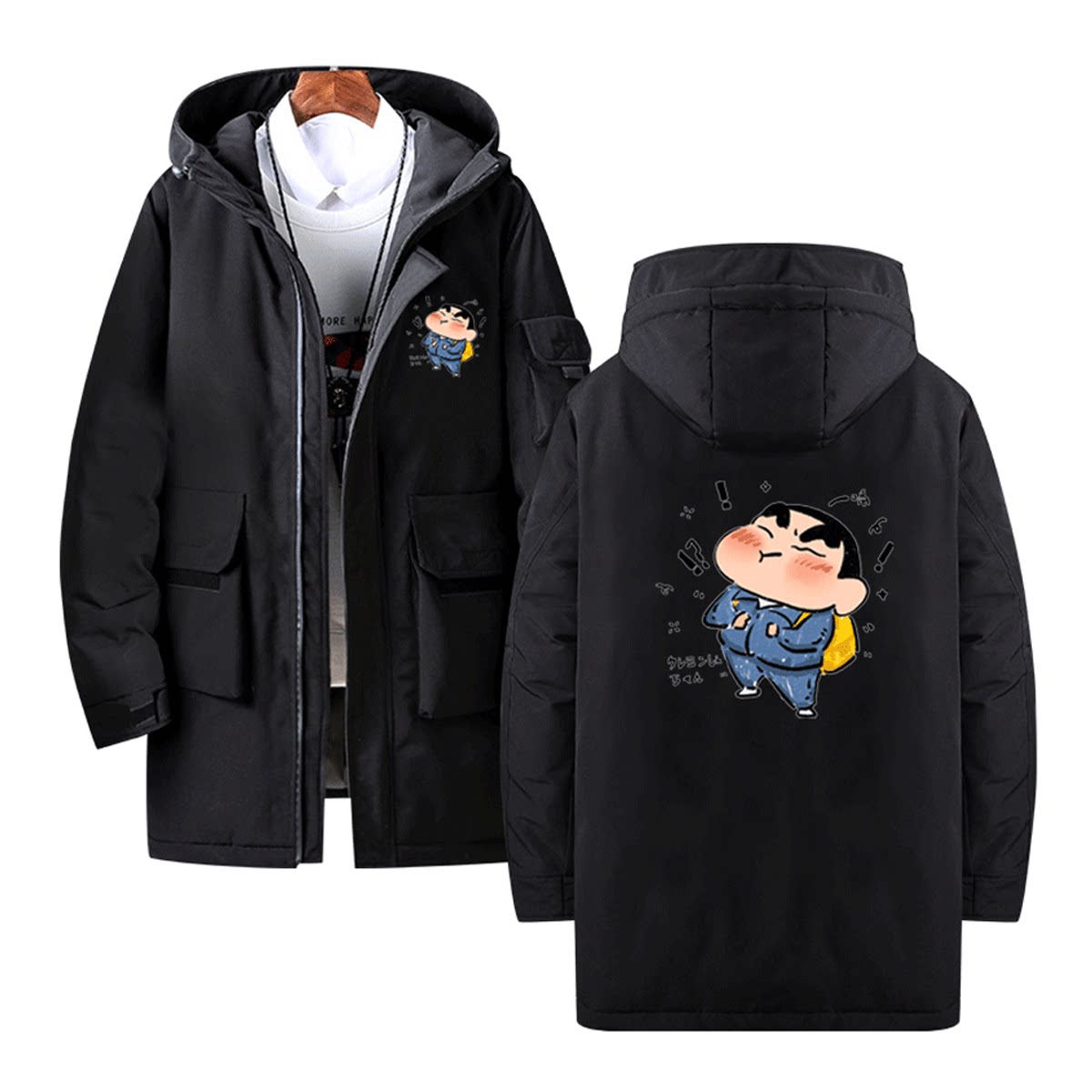 蜡笔小新男女2025新款卡通联名动漫男情侣可定制中长款带帽羽绒服