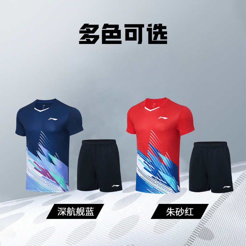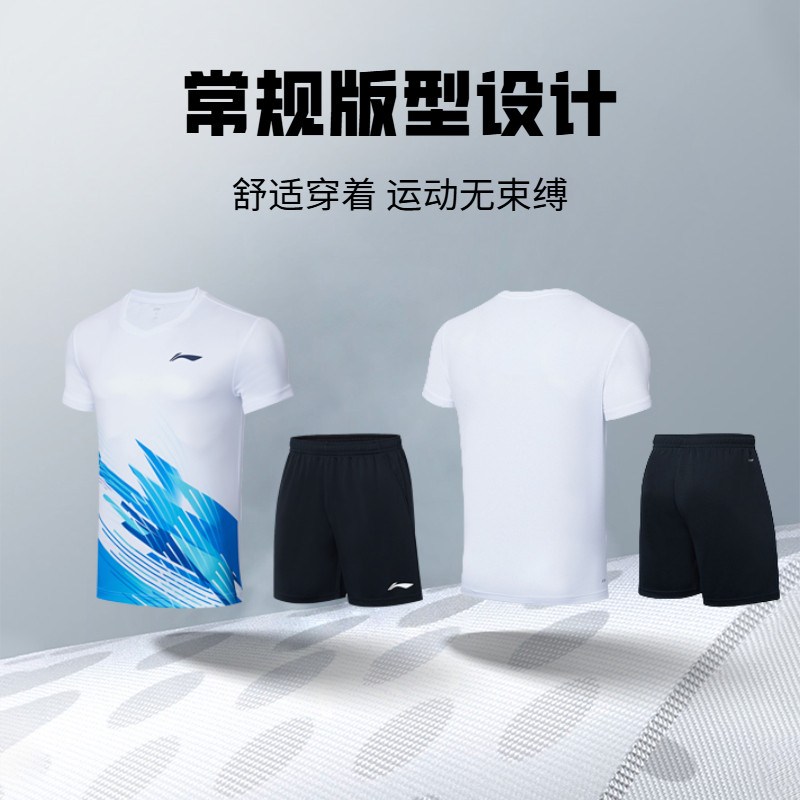 李宁羽毛球比赛服训练套装男女新款情侣针织速干运动服短袖短裤