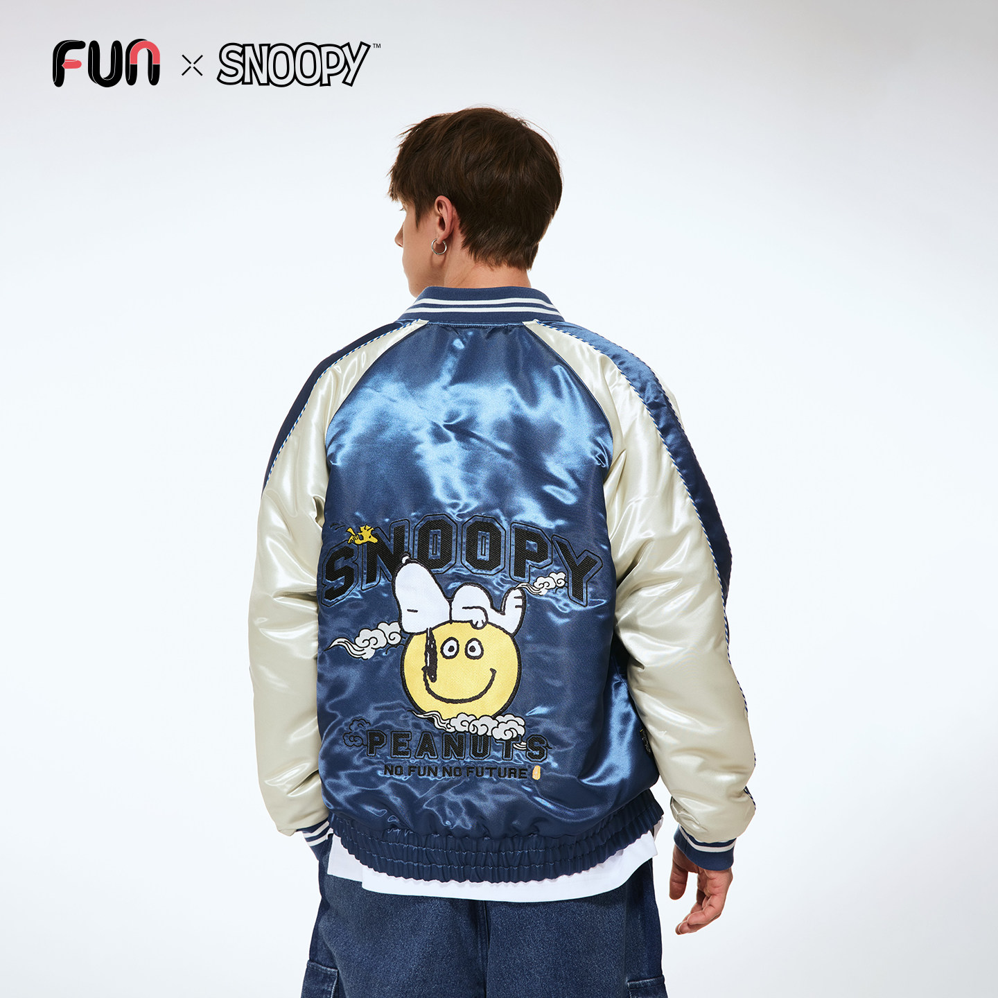 Fun2025冬季潮牌棉服史努比联名印花棒球服休闲情侣夹克外套男款