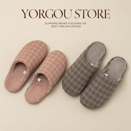 远港秋冬季格纹软底棉拖鞋