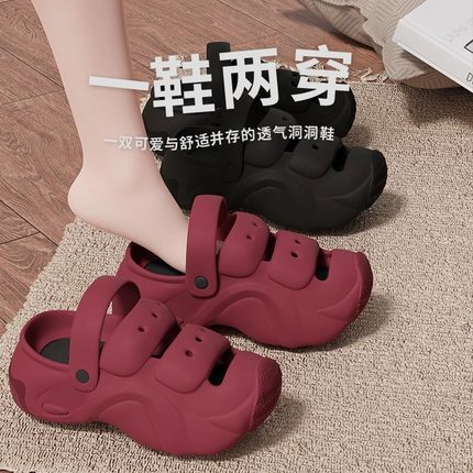 2025新款洞洞鞋女夏季网红时尚外穿沙滩防滑厚底增高两穿包头凉鞋