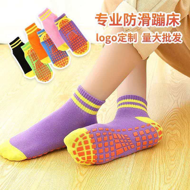 logo定制早教蹦床专用防滑袜子套男女大人儿童室内纯棉瑜伽游乐场