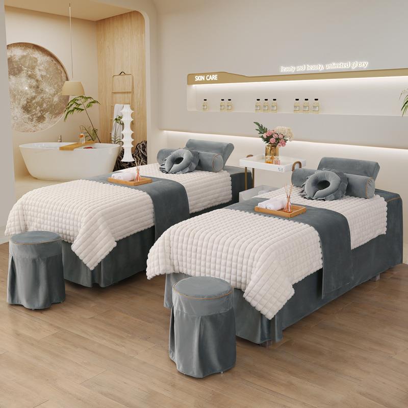 新款瑞典绒美容床罩四件套高档轻奢美容院按摩理疗采耳床套