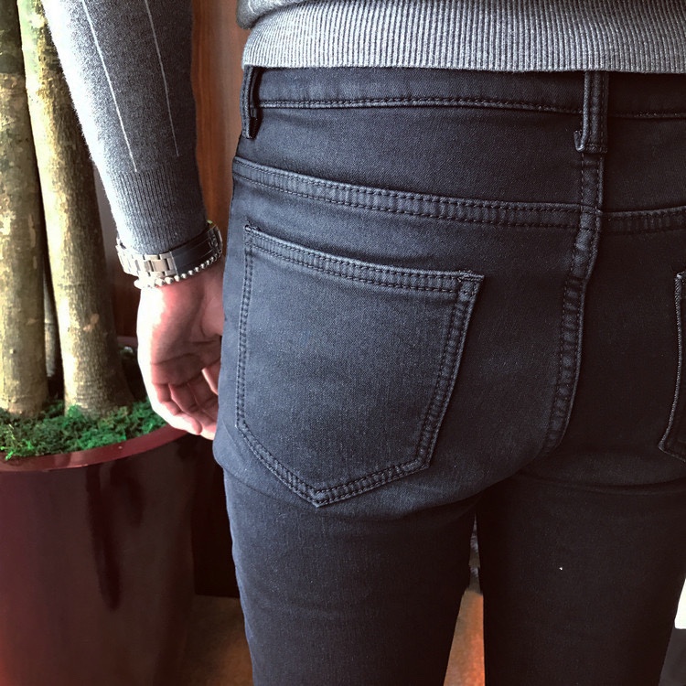 九平道韩国东大门英伦加绒牛仔裤