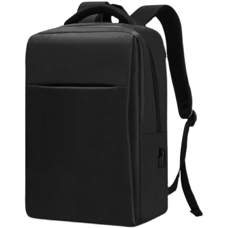 青年商务双肩包方形双拉链纯色电脑包男女通用韩版学生背包大容量